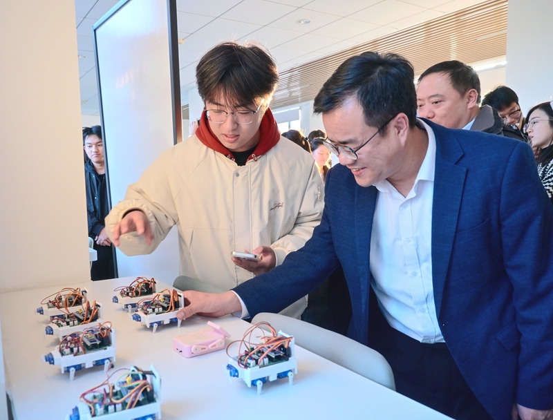 论坛闭幕式后,与会嘉宾共同参观了燕京理工学院学生人工智能作品展。故障诊断算法模型、智能导航原型等一批兼具学术价值与应用前景的创新成果集中亮相,涵盖产业应用、教学实践等多个维度,直观展现了青年学子将前沿学术理念转化为实践成果的能力,进一步深化了产学研用融合共识。