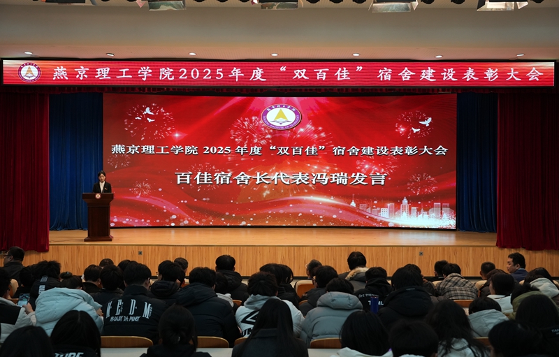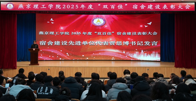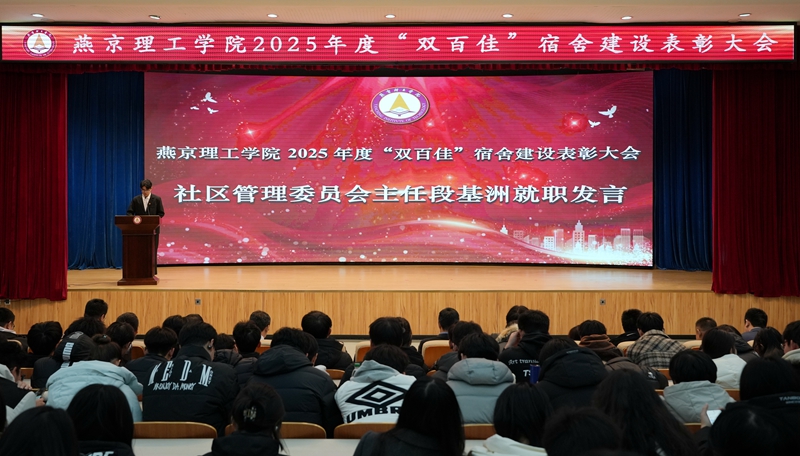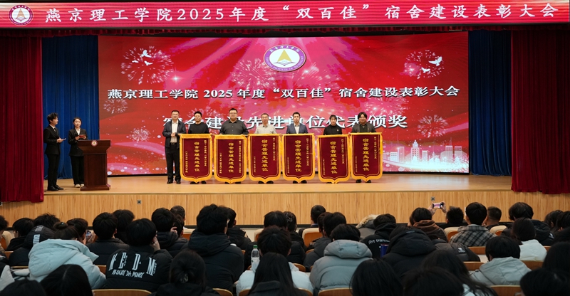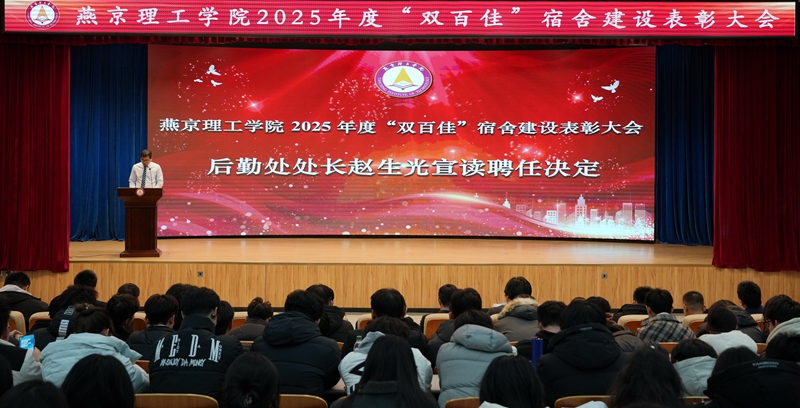 本网讯(学生处 王辰辰)为总结宿舍建设成果,表彰优秀集体与个人,推动校园宿舍文化建设迈向新高度。12月11日,燕京理工学院于报告厅举行“宿”说燕理•“寓”见美好2025年度“双百佳”宿舍建设表彰大会。党委副书记、副校长王传超,副校长宋伟,后勤资产处、学生处、安全处,各二级学院相关负责人,宿管代表、学生代表参加大会。