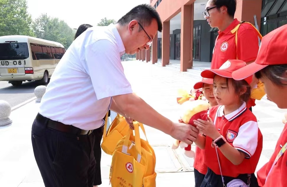 党委副书记、副校长王传超为响岩小学学生赠送“京京”