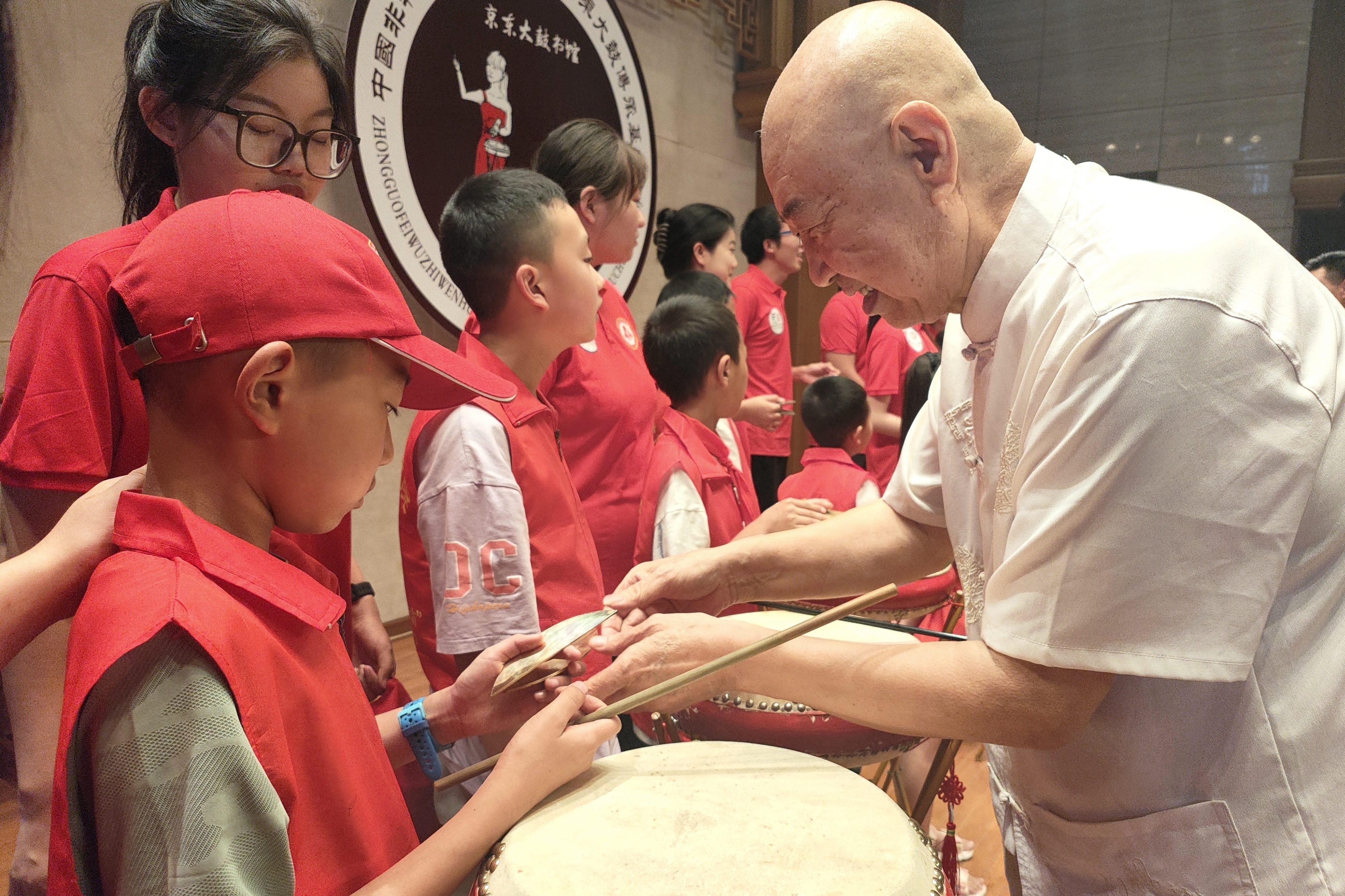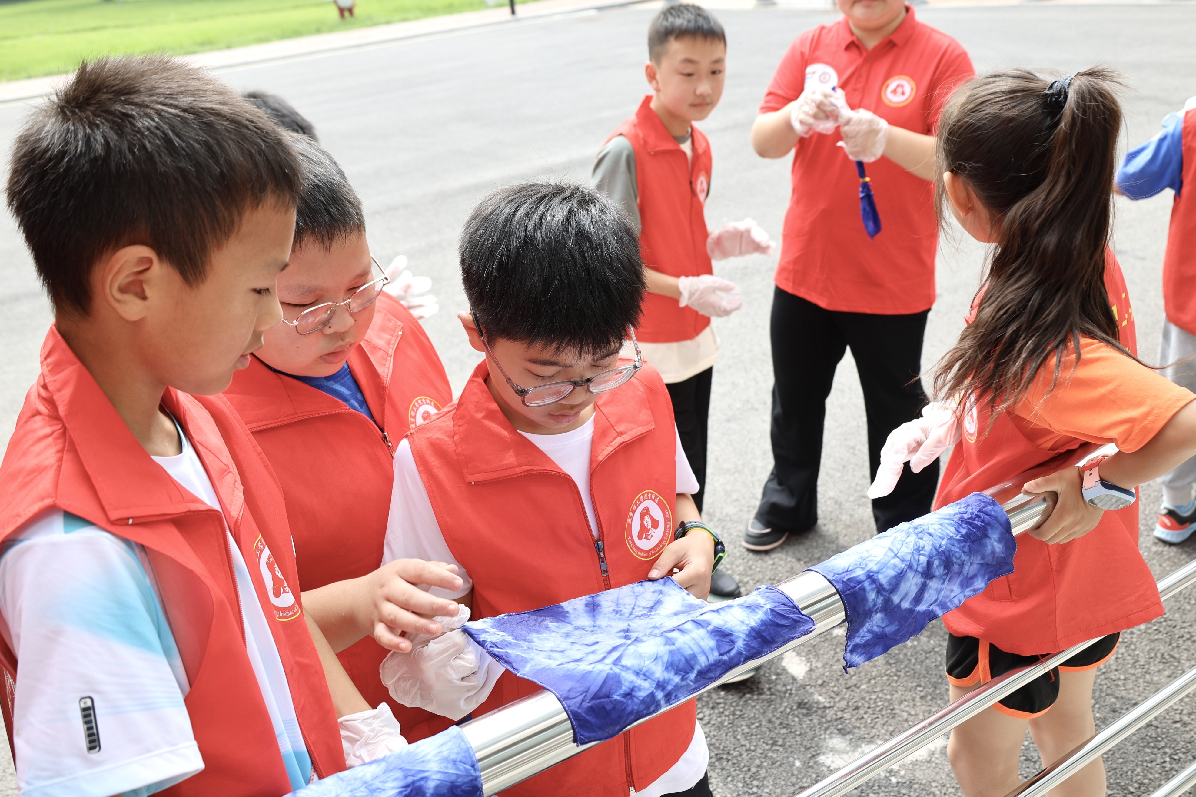 “老师,您看我染出了蓝色的云朵!”从扎花、泡水、浸染、清洗、晾晒,实践队员协助小朋友们做出了一件件独一无二的扎染作品。书鼓、节板、二胡、三弦……伴着京东方言的唱腔响起,鼓槌挥舞间,古老韵律回荡,仿佛在与历史对话,与文化相拥。孩子们跃跃欲试,纷纷拿起乐器,露出纯真笑脸。