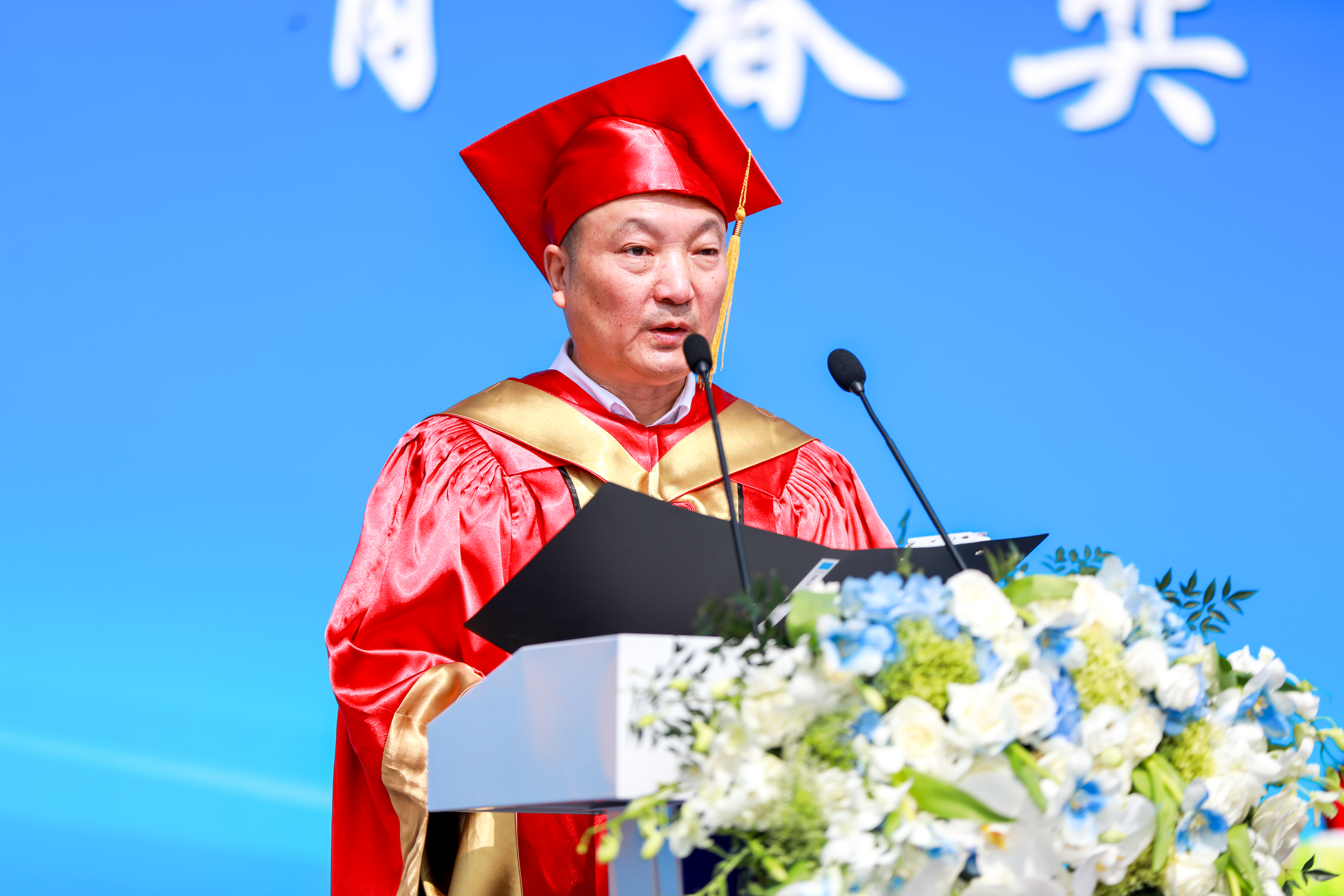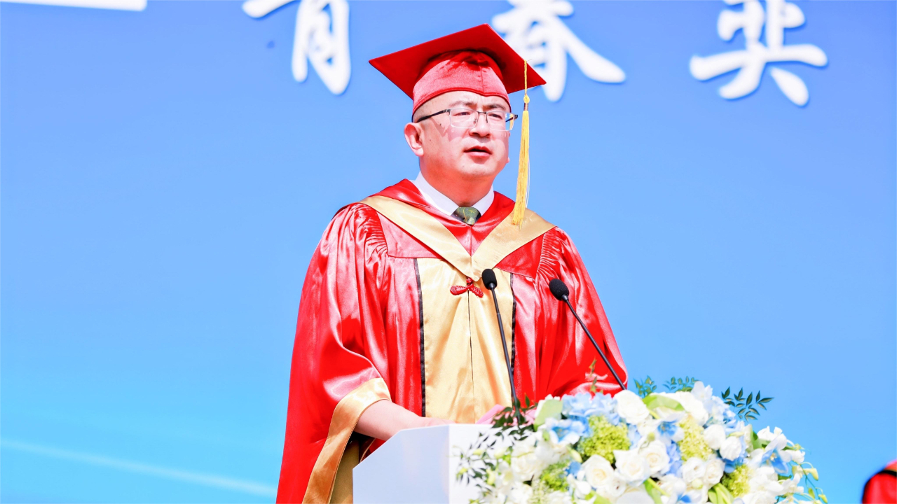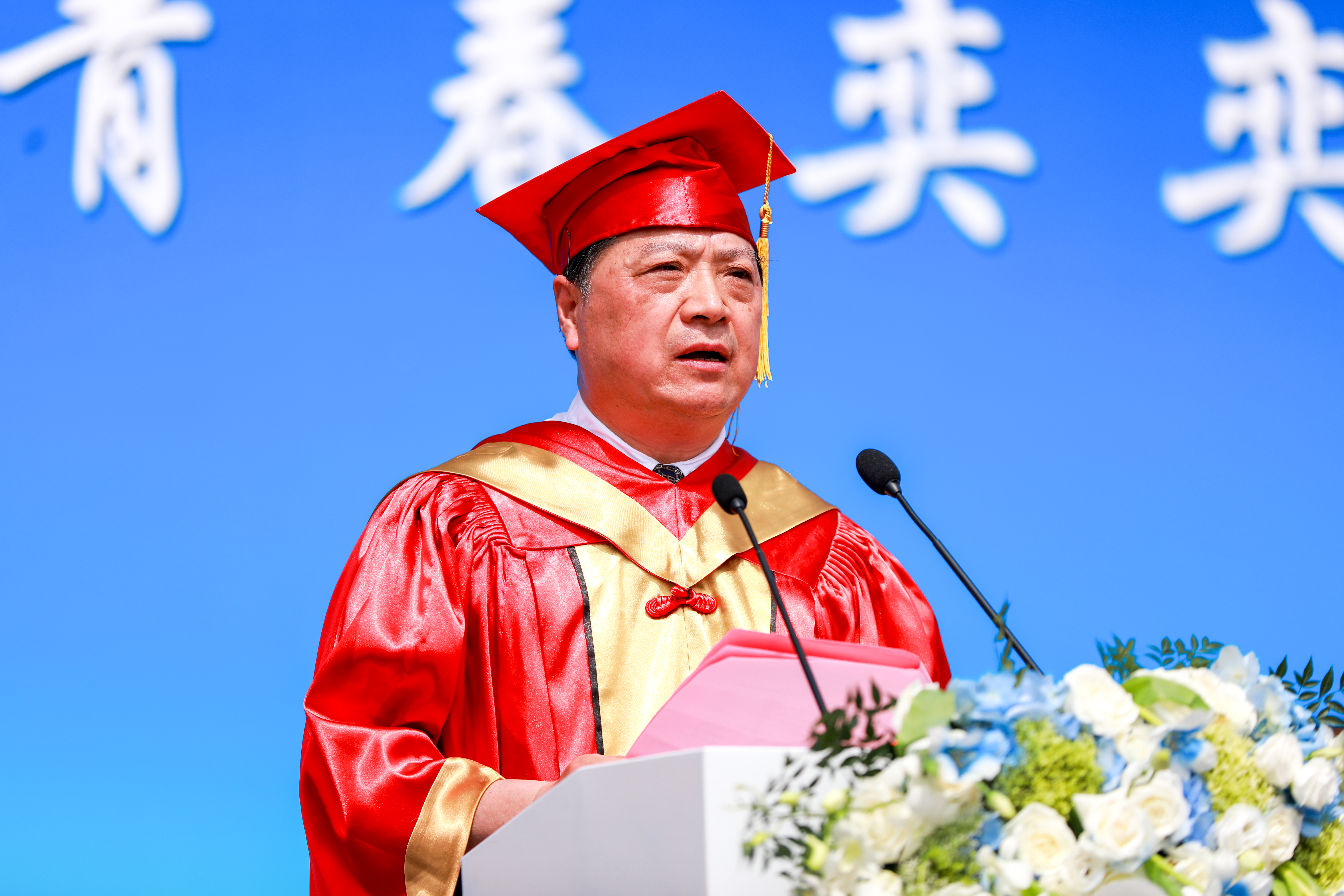 春风化雨,润物无声。校长杨庚宇给毕业生上最后一课。杨校长代表学校向2024届全体毕业生致以诚挚的祝贺,向辛勤培育同学们的老师和支持帮助学校的校企合作单位的师长和校友表达了衷心感谢和崇高敬意。他指出,正是因为同学们的团结拼搏、昂扬奋进、以汗水描绘青春,才推动了学校各项事业的蓬勃发展。他强调,学校7万多优秀毕业生中有一大批同学已成长为各行各业的中坚力量,各自在祖国建设的不同岗位上书写着人生绚丽篇章,为即将走入社会的同学们树立了榜样。