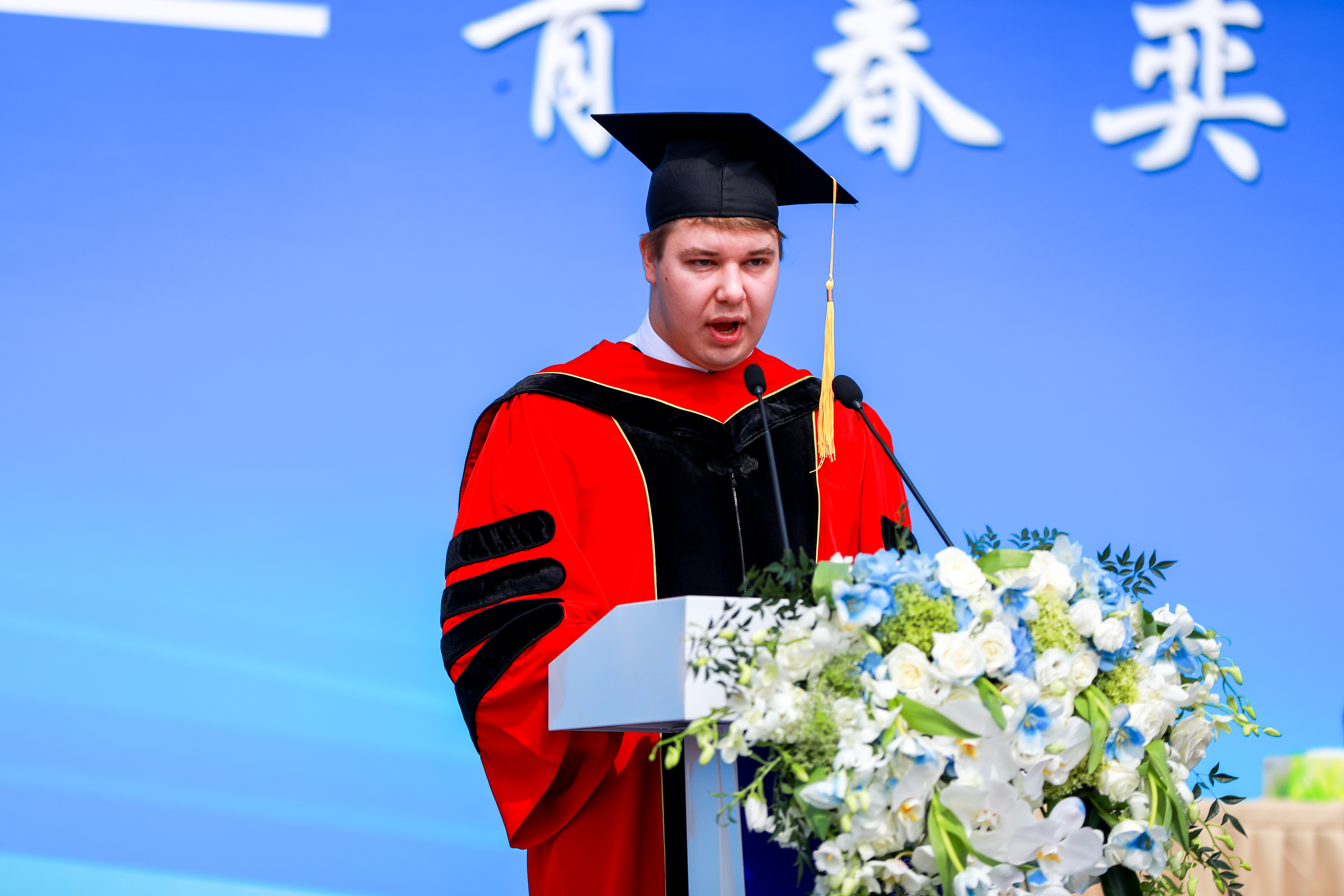 “燕京理工学院以国际发展支点为学生们打造国际化育人平台,让学生在校内就能享受到国内外优质的教育服务资源,架起与世界沟通的桥梁。”学校国际合作大学导师、俄罗斯彼尔母人文师范学院Valerii 瓦莱里教授寄语毕业生们要继承和发扬燕京理工学院勤奋笃学的优良学风,在推动构建人类命运共同体实践中彰显青春活力。