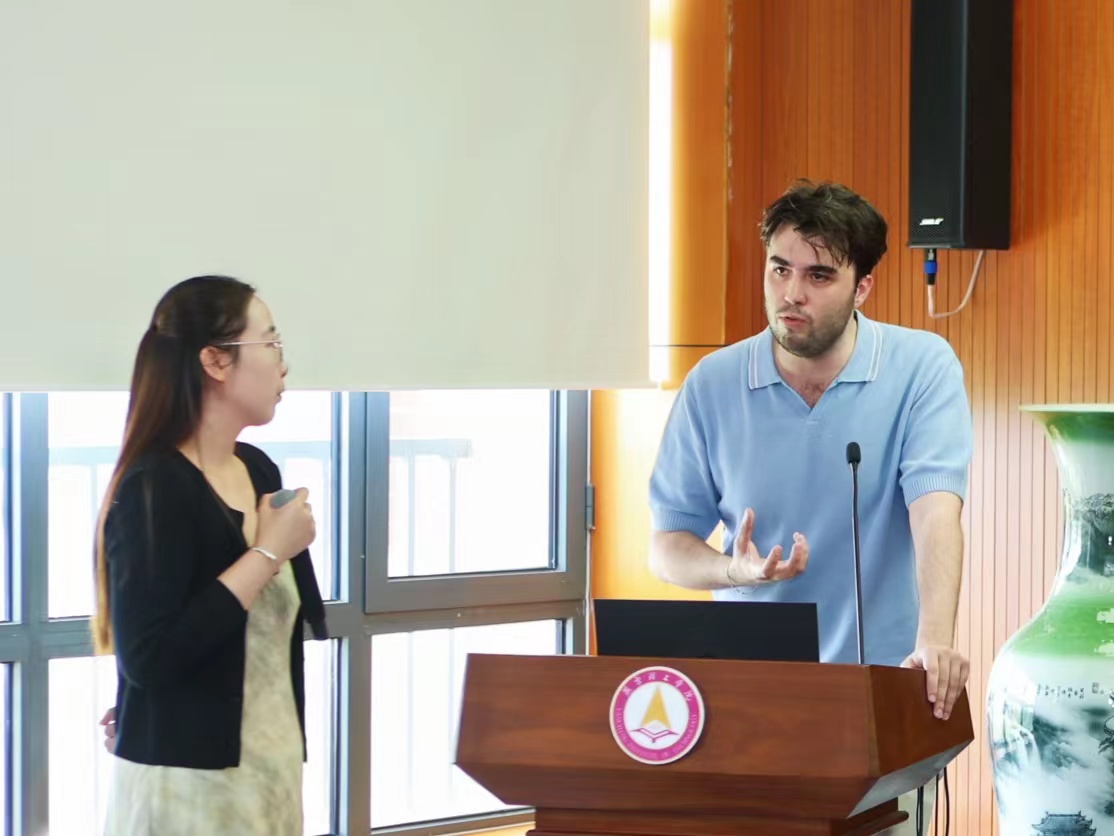 主题讲座在综合办公楼525室召开。副校长李庆为Fabian Morley颁发了客座教授聘书,送上精心准备的礼物,并合影留念。