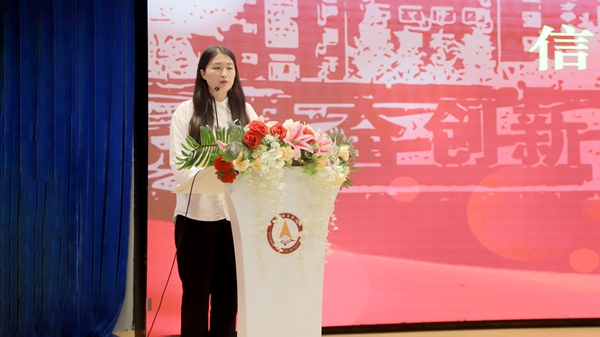 优秀学生代表、信息科学与技术学院的房乐乐同学发言