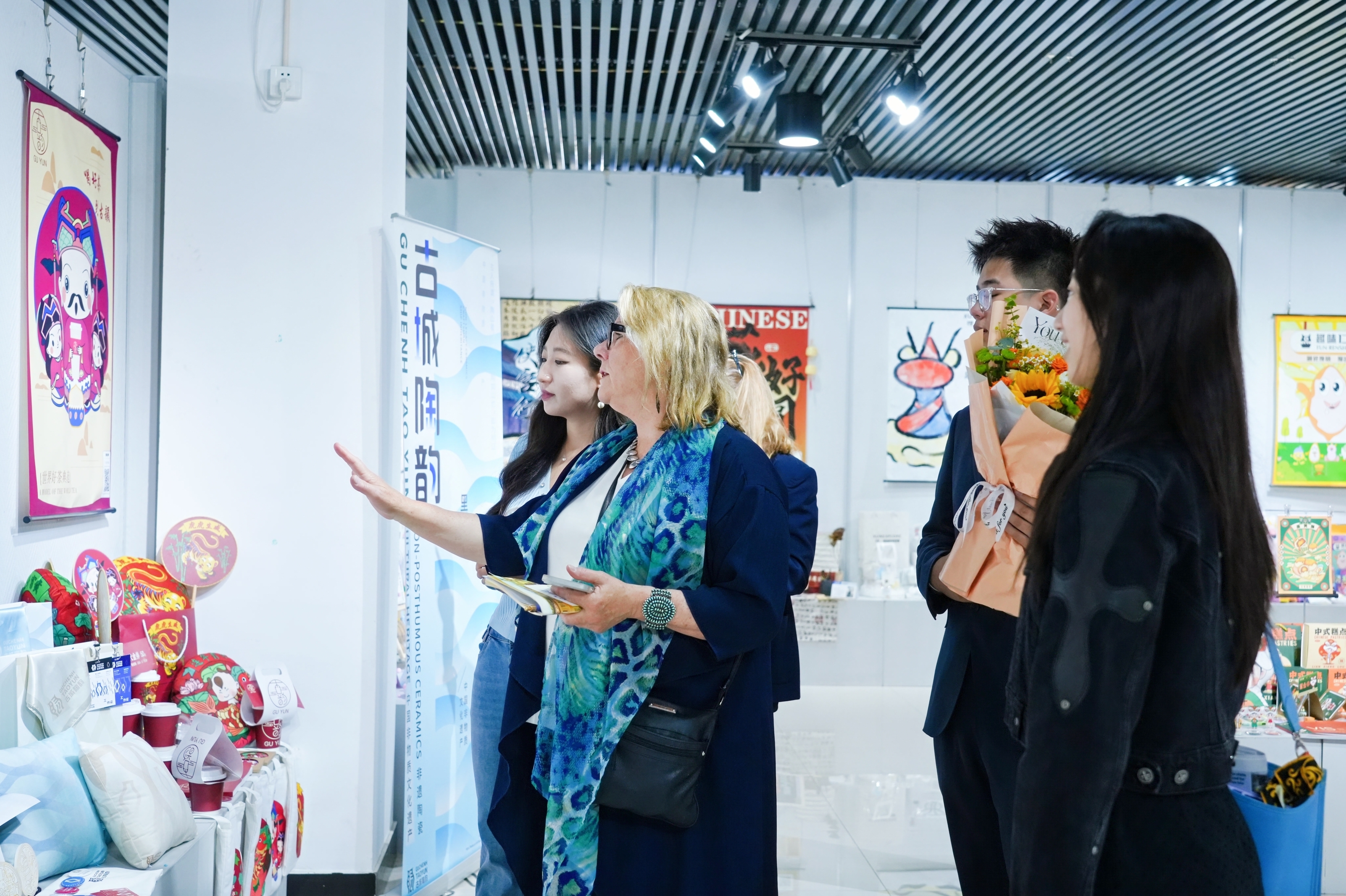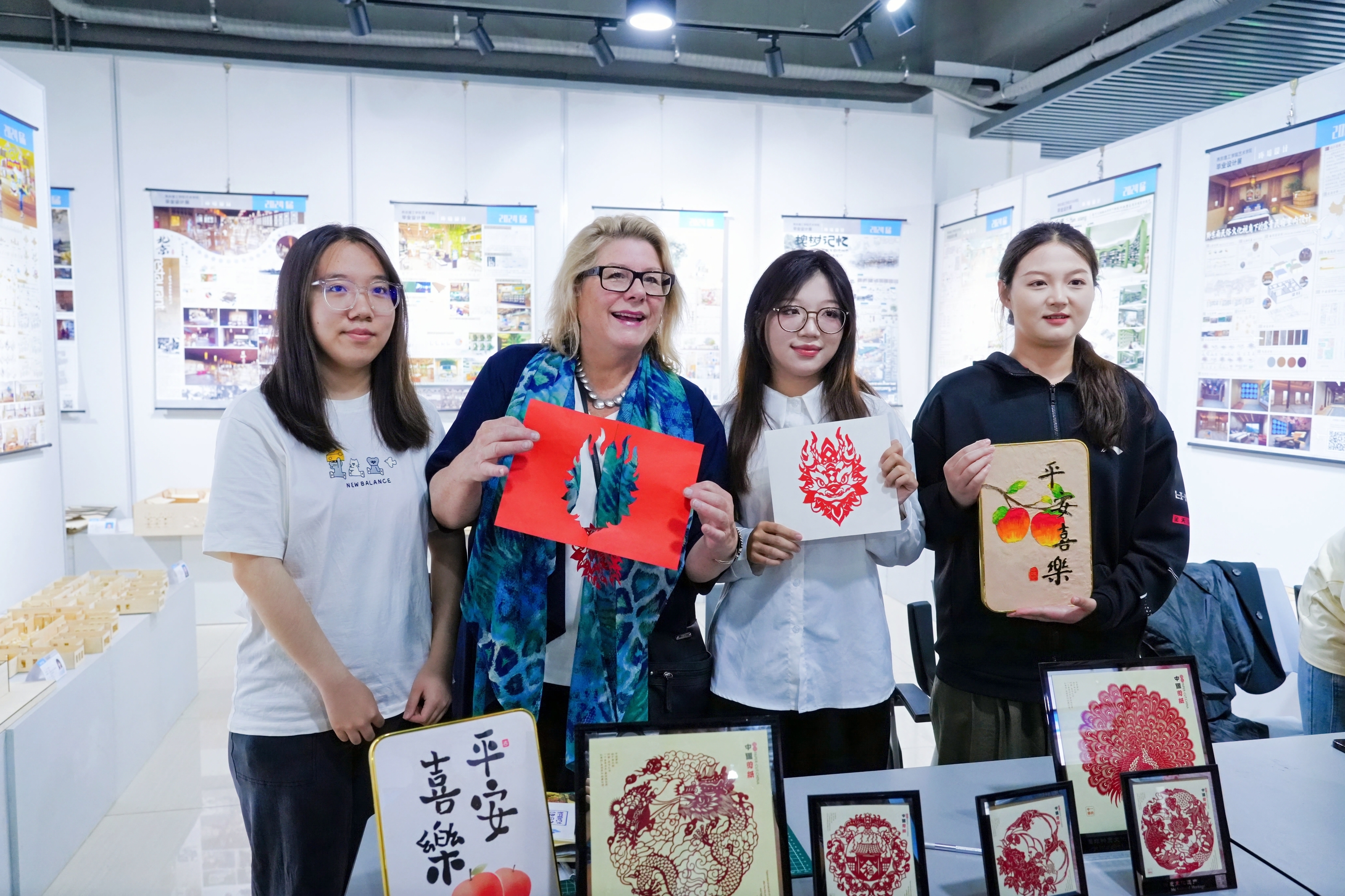 23日一早,燕理师生手捧鲜花热烈欢迎卡罗尔·汉弗莱斯博士一行的到来。“amazing”“special”“beautiful”……在海外深造国际班学生的讲解下,卡罗尔·汉弗莱斯博士一行参观了燕京理工学院的艺术展厅,并对艺术学院学子的毕业作品赞叹连连,肯定了学校的育人成果。学生们将自己制作的工艺剪纸和掐丝珐琅作为礼物赠予卡罗尔·汉弗莱斯博士和多罗特·卢奇博士。
