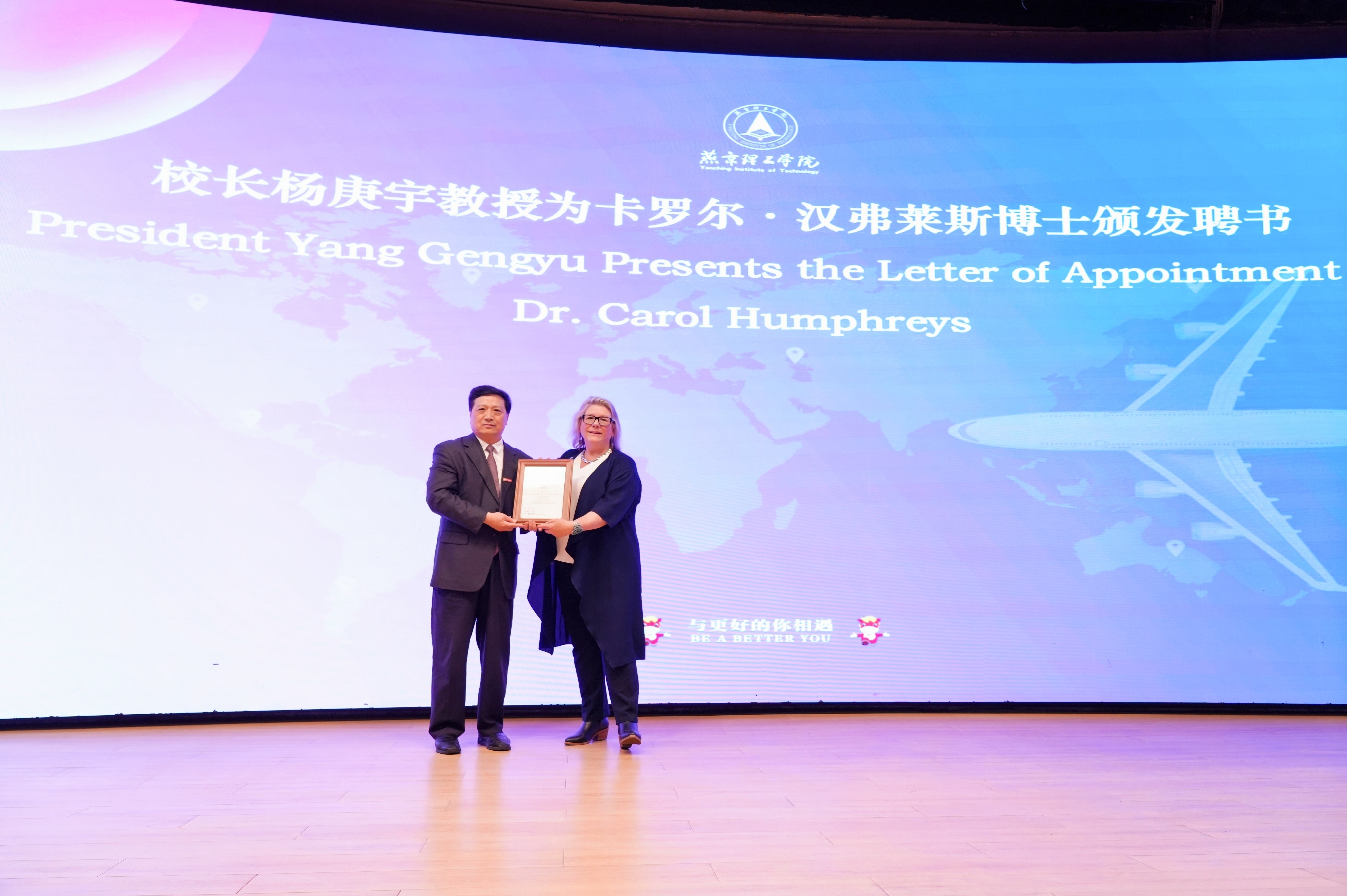 校长杨庚宇向卡罗尔·汉弗莱斯博士颁发荣誉教授聘书