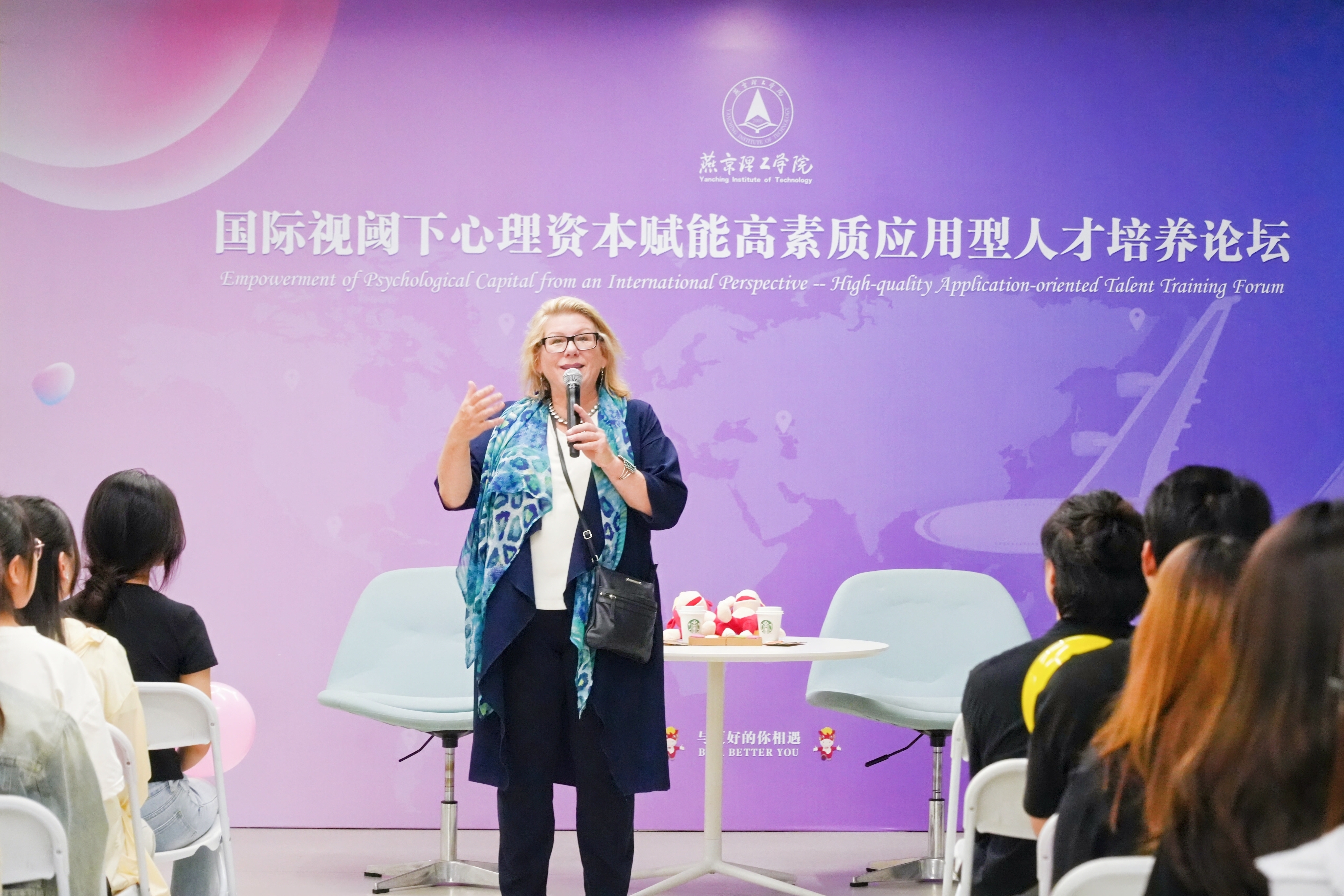 本网讯(宣传部 国际教育学院 人文教育学院 传媒学院 环境与健康学院 刘婷婷 付盛通 谷是瑾 吕佳 王妍 左冬兴 张子璇 石芮源 窦雄鑫 何思达 孙梦朔 万嘉旭 陈锦腾 王凯文 任浩源 闫亚琳 魏乐祯 王鹤璇)5月23日,燕京理工学院举办国际视阈下心理资本赋能高素质应用型人才培养论坛。美国索菲亚大学校长卡罗尔·汉弗莱斯博士与美国索菲亚大学核心教授、全球心理学大会主席多罗特·卢奇博士应邀参加了有关活动,与千余名在校学生进行了互动交流和讨论。校长杨庚宇、副校长吴汶燕,国际教育学院、环境与健康学院、人文教育学院、传媒学院等二级学院院长热情迎接并陪同参加了有关活动。