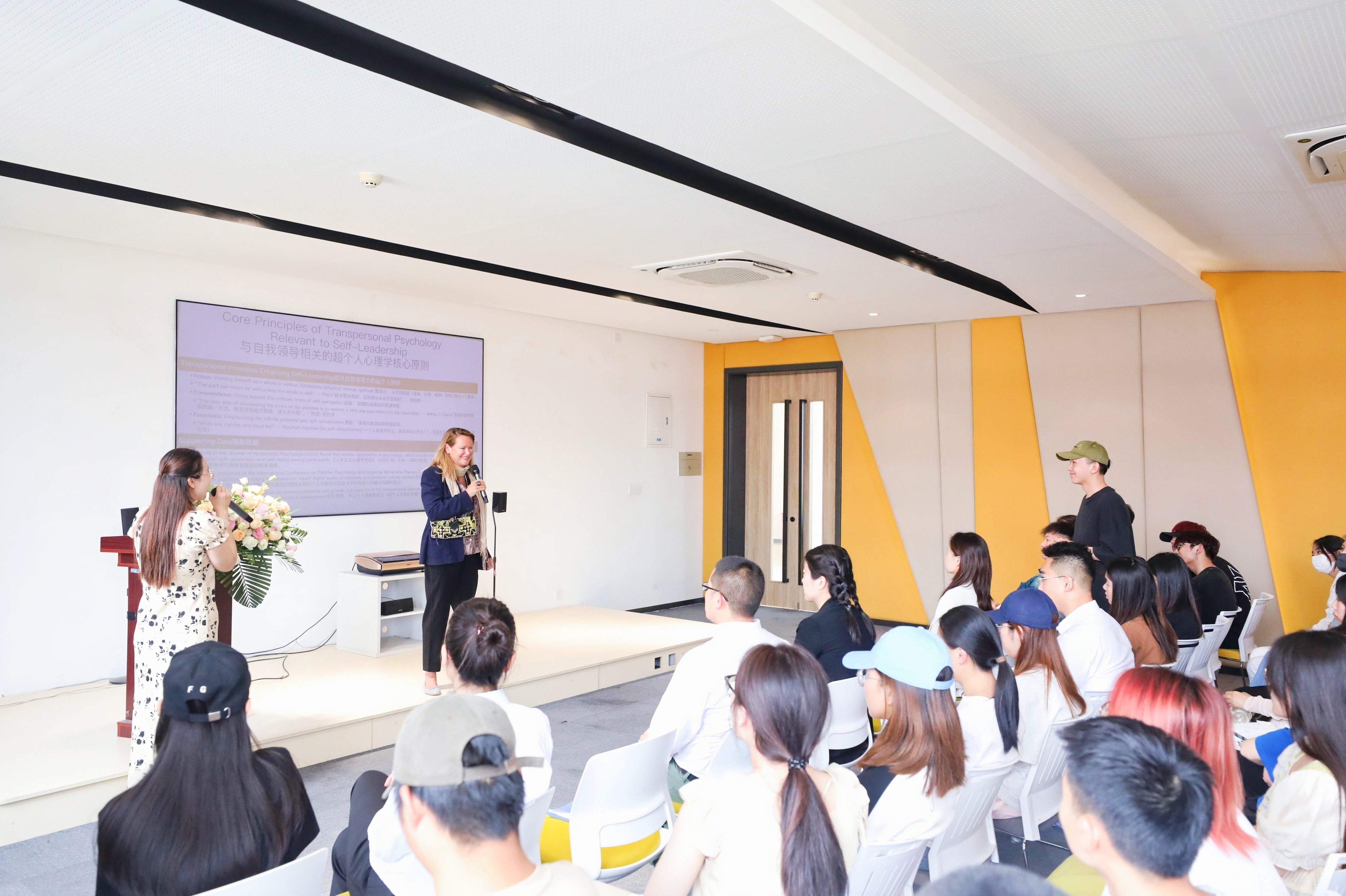 “自我实现、充分发挥潜能、超越自我、现在就找到更远大的目标。”在报告厅,卡罗尔·汉弗莱斯博士进行了“全人教育——以人为本/以学生为中心的高等教育途径”主题讲座,分享了索菲亚大学在教育领域的先进理念和实践经验,强调了在高等教育中重视人的全面发展、以学生为中心的重要性。