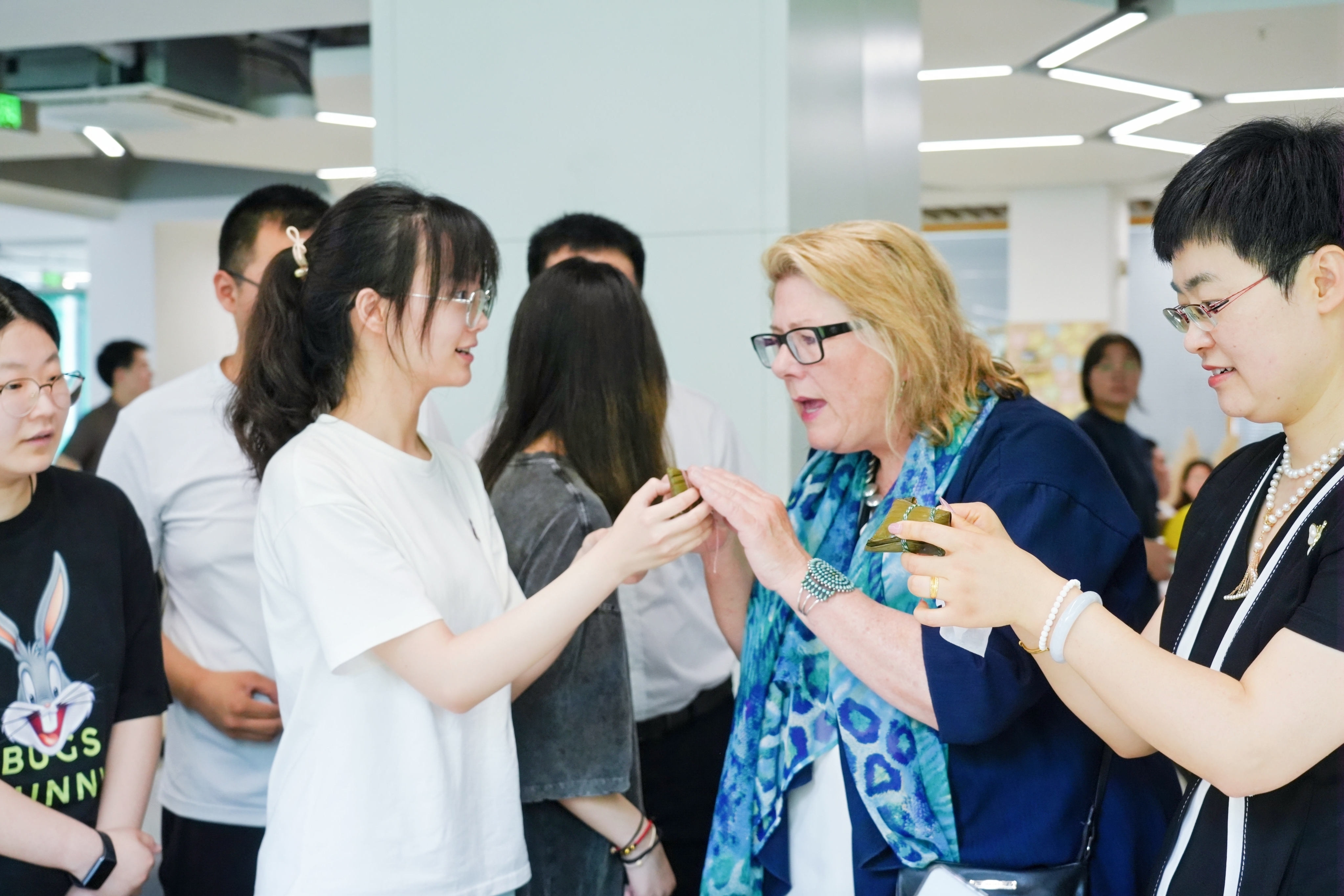 卡罗尔•汉弗莱斯博士以己为例,向同学们分享了与心理学的故事。她认为,心理学可以帮助学生更好的理解人,更好的了解工作,了解相关政策。她希望学生们能够继续深入探索心理学,开辟多样化的职业路径。值此端午佳节之际,卡罗尔•汉弗莱斯博士与燕理师生共庆佳节,共享粽香。