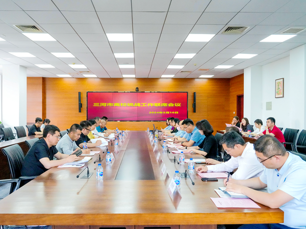 本网讯(党委统战部 郭雯 党委宣传部 任浩源 王浩杰)5月16日,三河市统战部举办的三河市高校统战工作联席会议在我校召开。廊坊市委统战部三级调研员马红梅,三河市委常委、统战部部长周海涛出席会议并讲话。华北科技学院、防灾学院等6所高校统战工作相关负责人20余人参加会议。