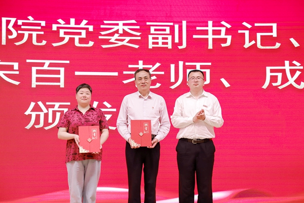 党委副书记、副校长王传超为宋百一、成健颁发聘书