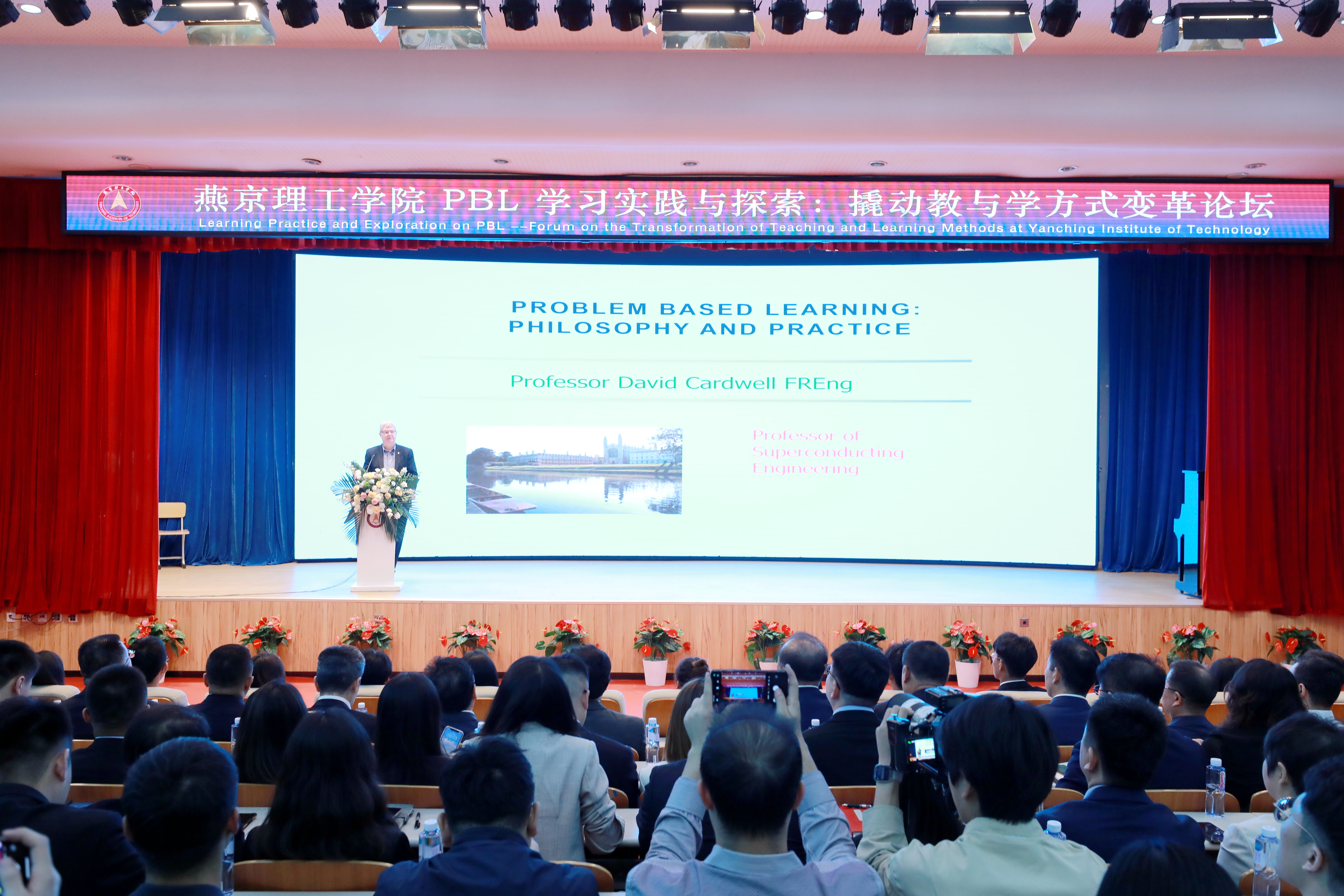 本网讯(宣传部 刘婷婷 李家曾 付盛通 谷是瑾 窦雄鑫 闫亚琳 何思达 许兴耿 孙梦朔 许博涵 陈锦腾 窦鹏润)“教授的演讲既有理论高度又有成果实践,是教与学探索的一次思想大开阔”“听了教授的讲座,我忽然知道怎么学习了”“基于问题的学习,是一场我们学生自主学习的新革命”……4月22日,燕京理工学院举办“PBL学习实践与探索:撬动教与学方式变革论坛”,探索新时代国际化人才培养的方向和路径,剑桥大学战略与规划副校长、英国皇家工程院院士大卫·卡德韦尔教授应邀作“基于问题的学习:哲学与实践”主题演讲,现场引起与会嘉宾和师生的强烈共鸣。