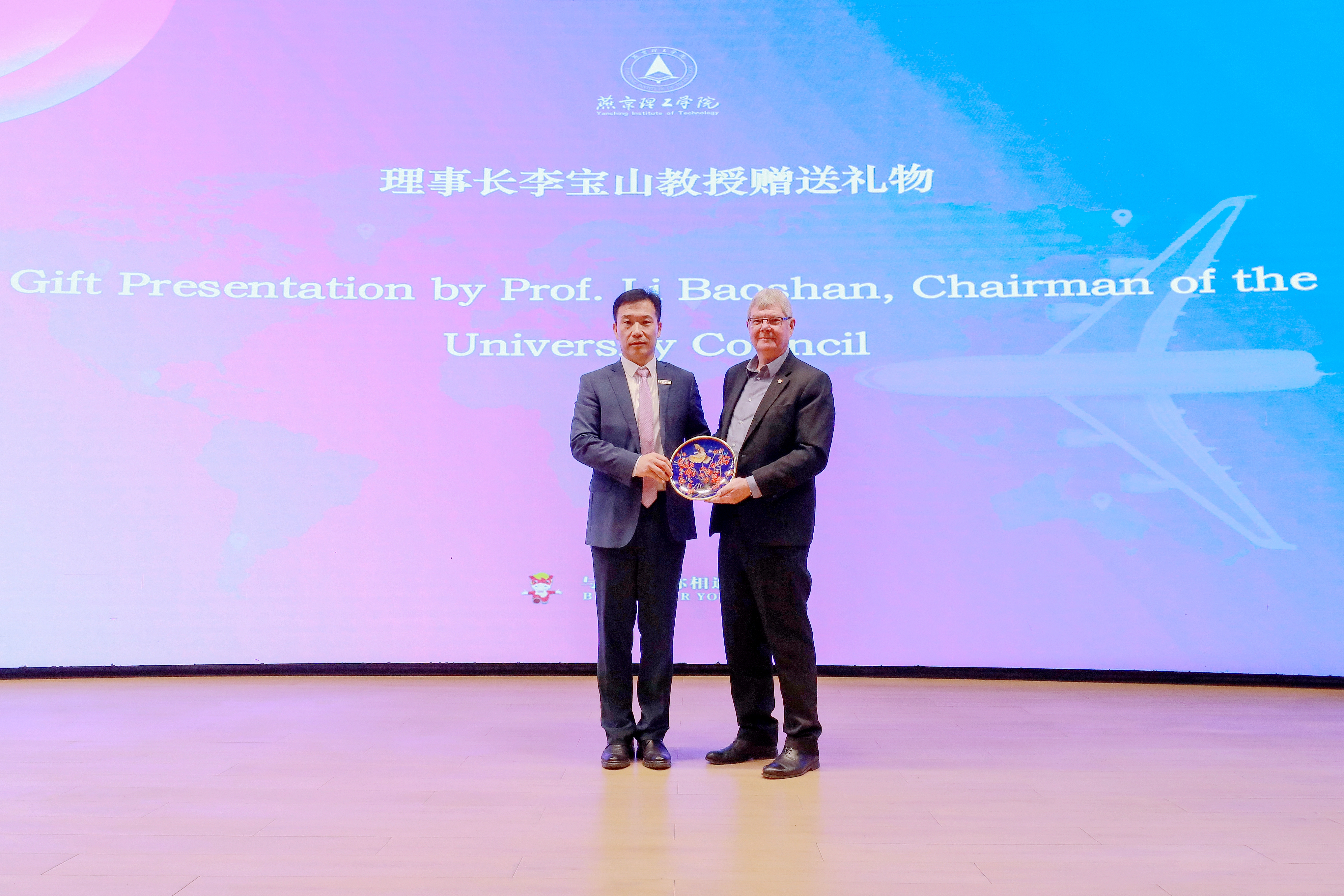 燕京理工学院理事长李宝山代表全校师生赠送礼物