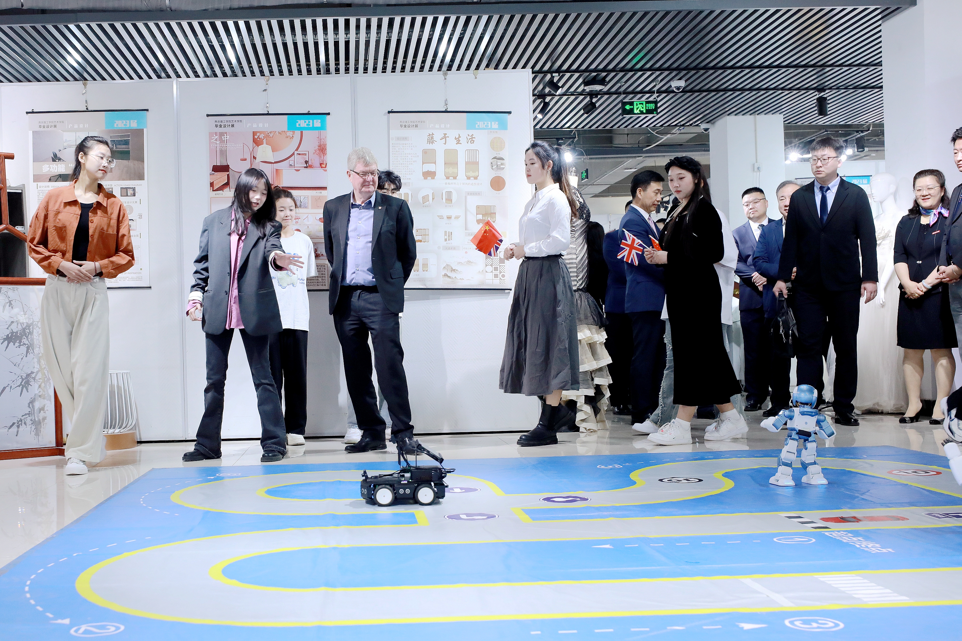 22日一早,燕京理工学院理事长李宝山、校长杨庚宇、副校长吴汶燕与师生在艺术楼前列队欢迎卡德韦尔教授的到来。在校园大使的介绍下,卡德韦尔教授参观了艺术展厅的学生创意作品和学生课堂实践,信息科学与技术学院和智能工程学院的智能车缓缓驶动,机器人翩翩起舞。卡德韦尔教授对燕京理工学院的教育教学成果表示肯定。学生代表将自己的课业作品赠送卡德韦尔教授,并合影留念。
