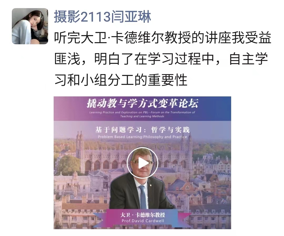 从剑桥大学工程学院案例出发,大卫·卡德韦尔分享了PBL建构思路和运用于实践中所取得的效果。他以自身丰富的教育经验和独特的视角,让大家感受感受到了PBL这一教学方式的魅力,一同思考如何在激发学生的自主学习兴趣。