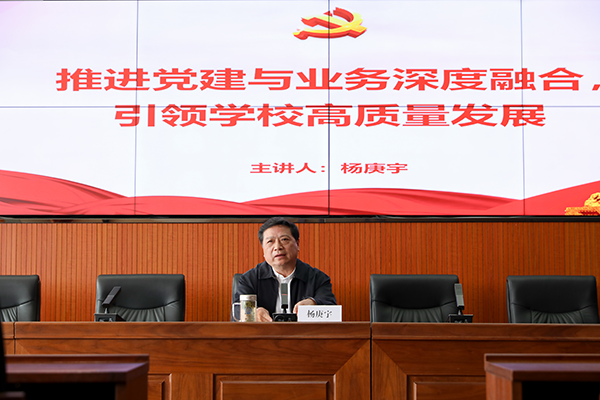 本网讯(党委办公室 党委宣传部 郭雯 谷是瑾)为全面提升基层党组织的政治功能和组织功能,提升我校党务干部推动学校高质量发展的业务能力,4月12日,我校2024年党务工作培训班第四讲在办公楼525会议进行,由校长杨庚宇作《推进党建与业务深度融合,引领学校高质量发展》专题讲座。学校党委委员,各党总支书记,各党总支委员,各党支部书记参加了专题培训。