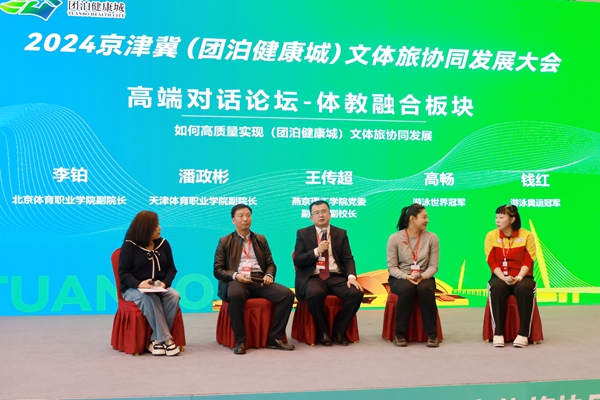 大会以“如何高质量实现文体旅协同发展”为主题开展高端对话论坛,分为体育文化、体育产业、体教融合、企业融合四大板块。燕京理工学院党委副书记、副校长王传超,北京体育职业学院副院长李铂,天津体育职业学院副院长潘政彬,游泳世界冠军高畅、奥运冠军钱红等嘉宾围绕“体育推进青少年身体和心理健康,提升国民体质”的议题展开深入研讨。