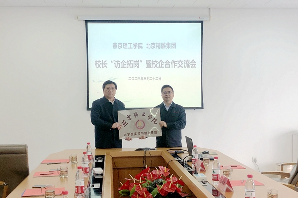 本网讯(智能工程学院 刘彬)3月22日,校长杨庚宇带队智能工程学院相关负责人赴北京精雕科技集团有限公司走访调研,校企双方围绕人才培养、实习就业、技术合作、社会服务等方面进行了深入探讨。