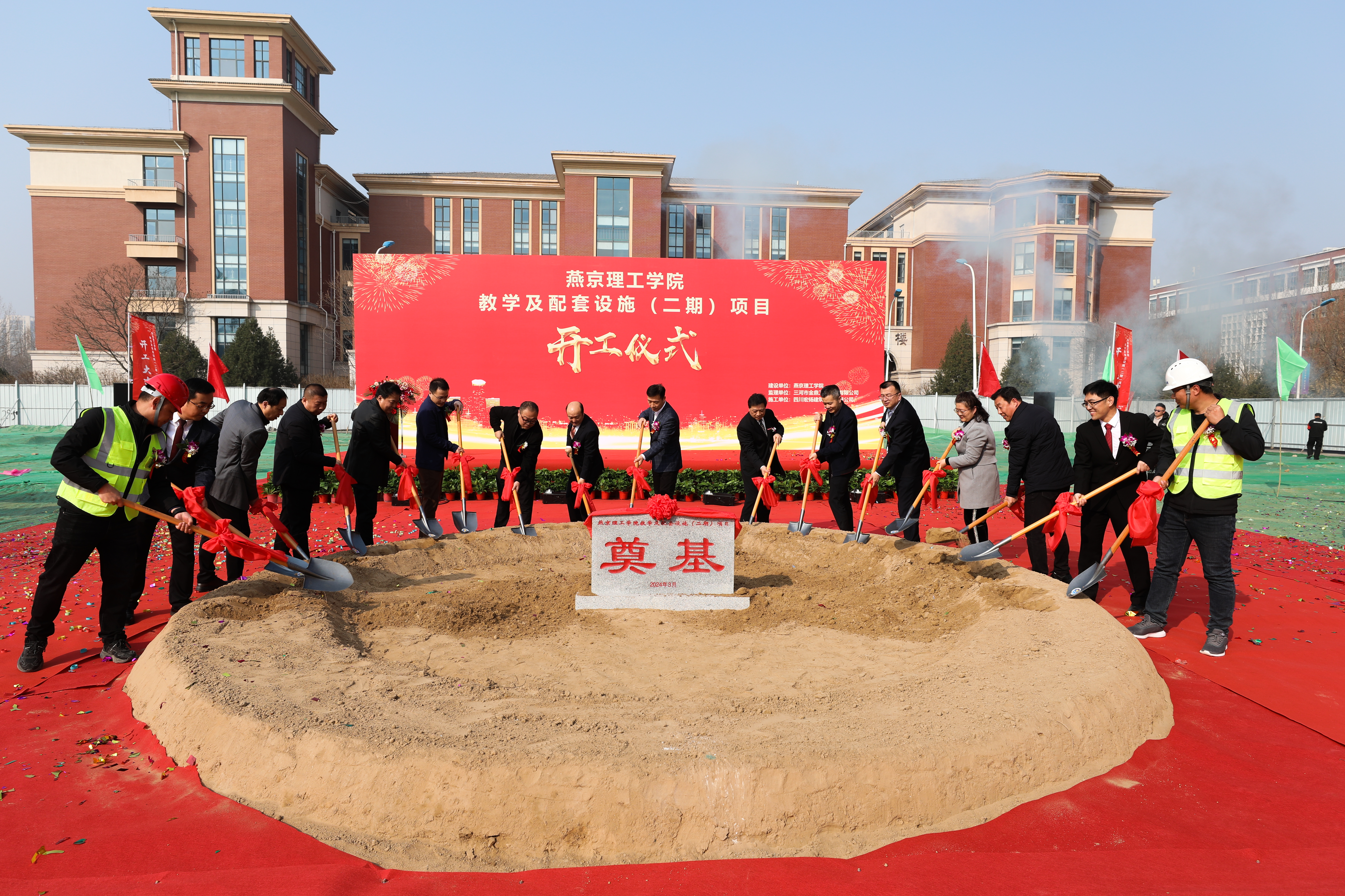 本网讯(宣传部 基建处 刘婷婷 付盛通 谷是瑾 窦雄鑫 阎相熹 闫亚琳 何思达 李博文 武瑞琛 孙梦朔 陈锦腾 曹贺鑫 刘佳运)3月15日,燕京理工学院教学及配套设施(二期)项目开工仪式在新建项目施工场内举行。校领导李宝山、杨庚宇、朱代春、李庆、王传超、吴汶燕、宋伟、赵鹏,四川宏扬建筑集团有限公司总经理朱川,三河市金鼎工程监理有限公司董事长吴雷,河北中色华冠岩土工程有限公司副总经理杨春山,中冶地建设集团(三河)建筑设计咨询有限公司焦明旭,学校相关部门、学院负责人及师生代表,施工单位和监理单位员工代表参加仪式。