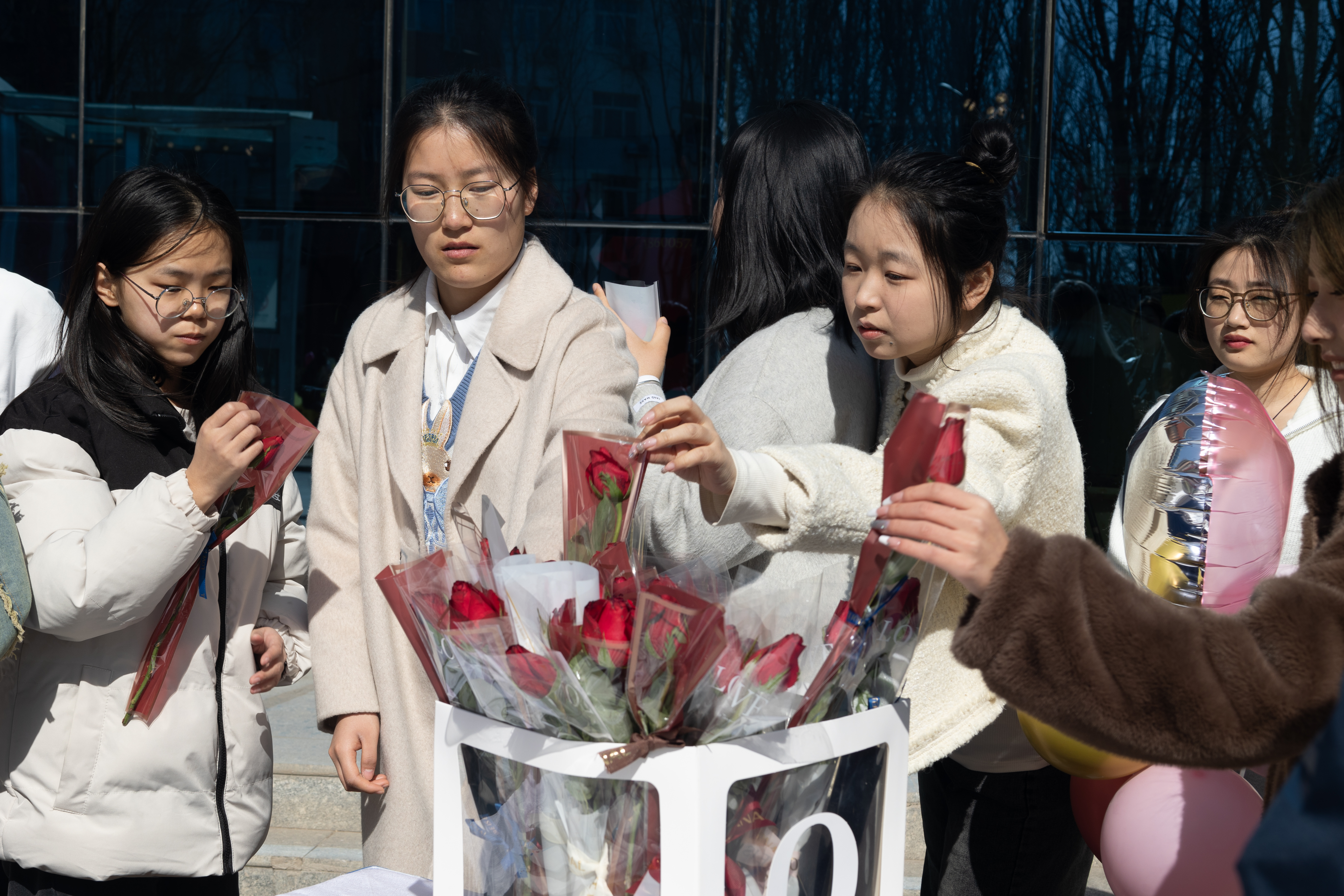 鲜花送递节日祝福、甜美蛋糕营造温馨氛围、拍照打卡墙精心布置……在第二餐厅前,副校长宋伟走进活动现场与在场师生共切节日蛋糕,并将一束束鲜花送递到师生手中,表达节日祝福。此外,活动现场还布置了抽奖活动,设置了就餐优惠券、精品钥匙链等精美礼品。大家纷纷表示,将会把这份关爱转化为精神动力,以更加饱满的状态、更加昂扬的斗志、更加优良的作风投入到学习和工作中去,汇集女性力量彰显新作为,竞展新风采。