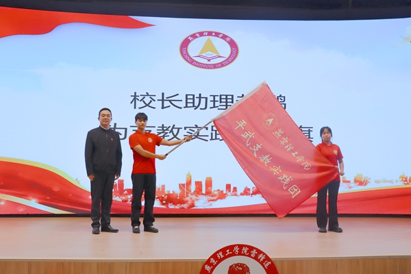 在“坚守初心,向光而行”长期支教出征仪式上,校长助理赵鹏为支教实践团授旗。他表示,支教实践团接过的不仅是一面旗帜,更是肩上的责任、心中的热爱。他希望全体支教队员用专业所学为乡村教育事业奉献青春力量。