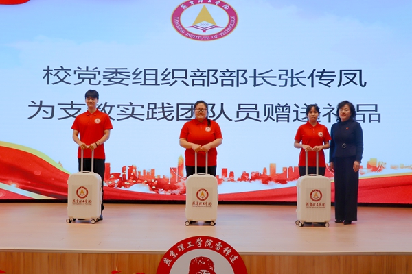 党委组织部长张传凤为支教实践团送上暖心礼品,传达了学校对支教队员的殷殷嘱托和深切关怀。