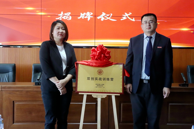 学校党委副书记、副校长王传超和燕郊创业服务中心总经理高明为双创实战训练营揭牌