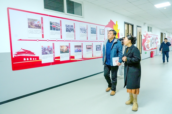 专家组集中考查了我校艺术展厅、党建主题广场、排练厅等美育场地。