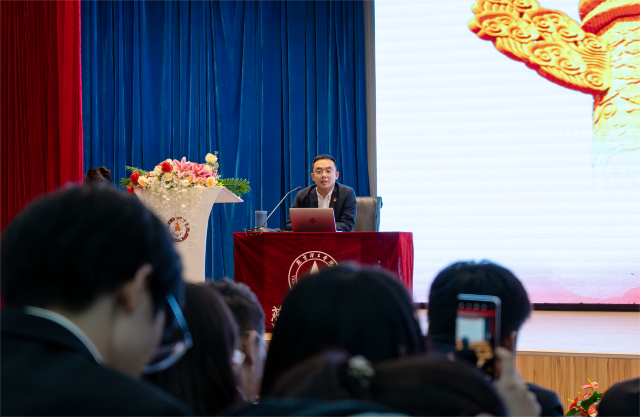 本网讯(党委办公室 李怡洁 李娜 黄佳怡 张骁楠) 2023年11月8日下午,燕京理工学院2023年秋季入党积极分子(高级)培训班第五讲在报告厅如期举行,此次培训的主题为《汲取百年精神,扛起使命任务——凝聚新时代党的宣传思想工作的磅礴力量》,本次培训由燕京理工学院党委宣传部长、校长助理赵鹏教授主讲。