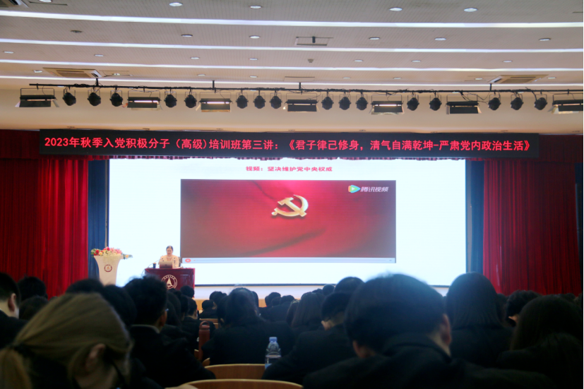 本网讯(党委办公室 党委宣传部 田艺佳 李怡洁 张语奚 刘鑫鑫 窦雄鑫 许兴耿)2023年11月1日下午,燕京理工学院2023年秋季入党积极分子(高级)培训班第三讲在报告厅如期举行,此次培训的主题为《君子律己修身,清气自满乾坤——严肃党内政治生活》,本次培训由党委委员、纪委书记、副校长吴汶燕教授主讲。