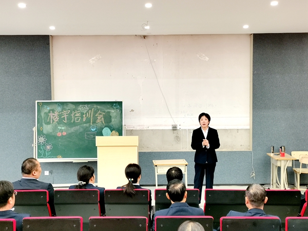 后勤楼宇服务中心主任刘晓详细地讲解了立岗服务、交接班操作规范、备用钥匙借用流程、“三位一体”网格化监管体系、宿舍楼内突发情况处理办法等内容,并要求新入职人员既要按照学校相关规定处理日常事务,坚持原则,照章办事,也要注重仪表,微笑服务,以礼待人,服从工作安排,高质量完成岗位工作。