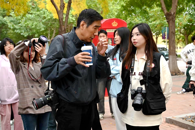 讲座后,柳军旗老师和同学们在燕理校园进行了摄影采风实践。柳老师边讲边拍,一起记录燕理的大美校园风光,定格美好生活社区建设成果。