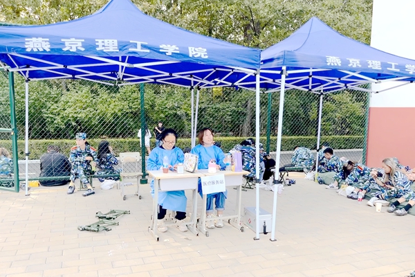 为保障军训顺利进行,后勤资产处统筹安排校医务室加增医护人员,军训现场设置医疗保障点确保每位参训师生能够在军训过程中得到及时的医疗救助。