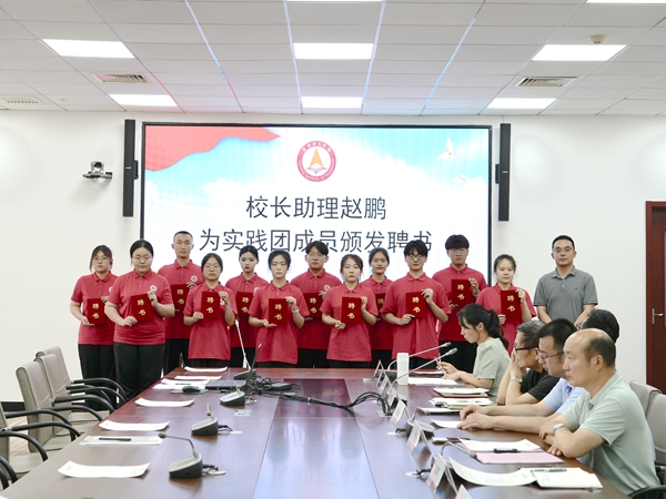 校长助理赵鹏为实践队员颁发聘书