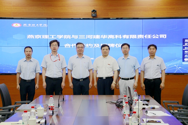 本网讯(智能工程学院 钟宇菲)6月28日,我校在综合楼428举行与三河建华高科有限责任公司校企合作签约与授牌仪式。三河建华高科有限责任公司总经理段成龙、副总经理吕磊,燕京理工学院校长杨庚宇、智能工程学院、就业指导与校企合作中心负责人等参加会议。