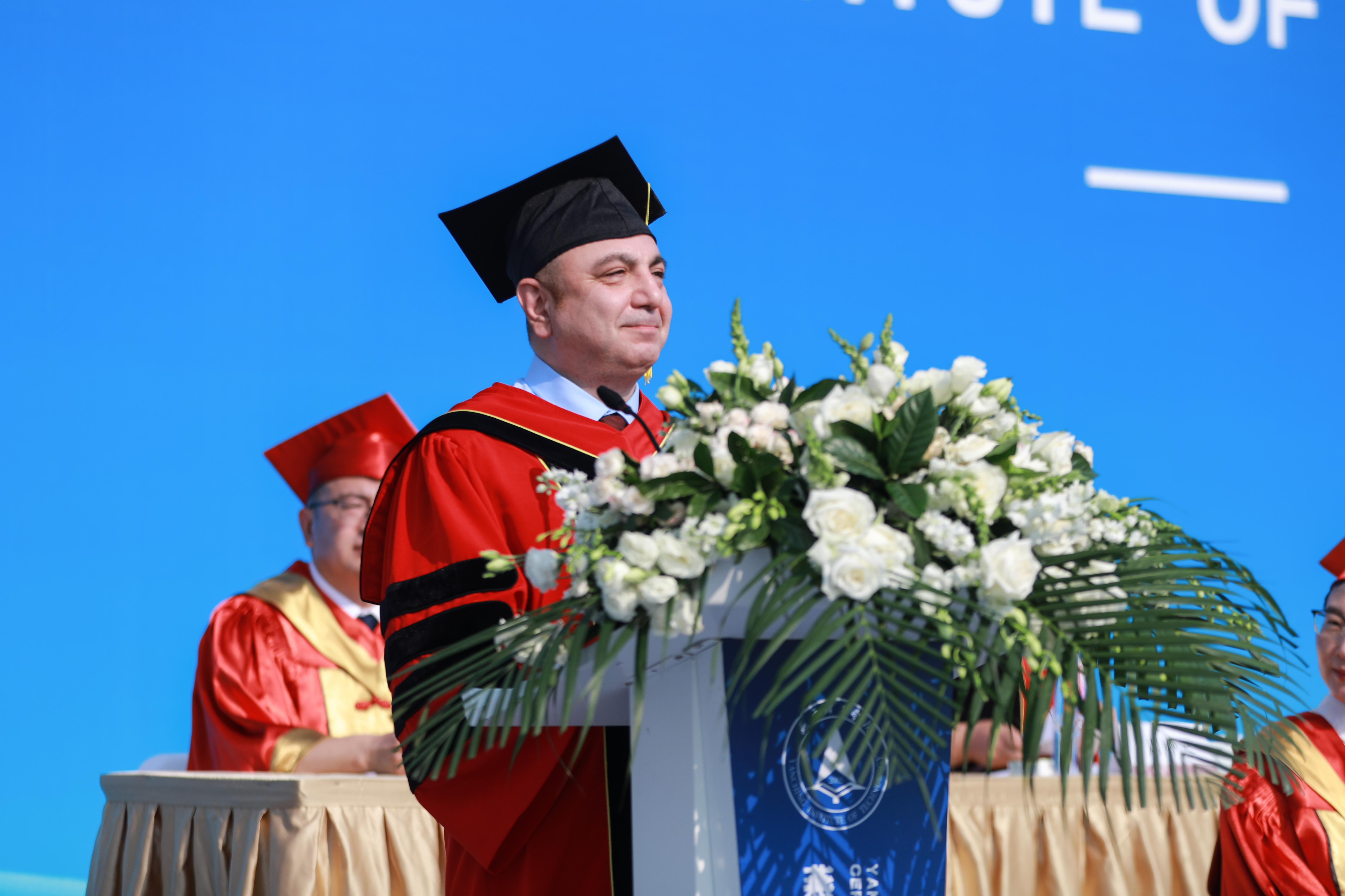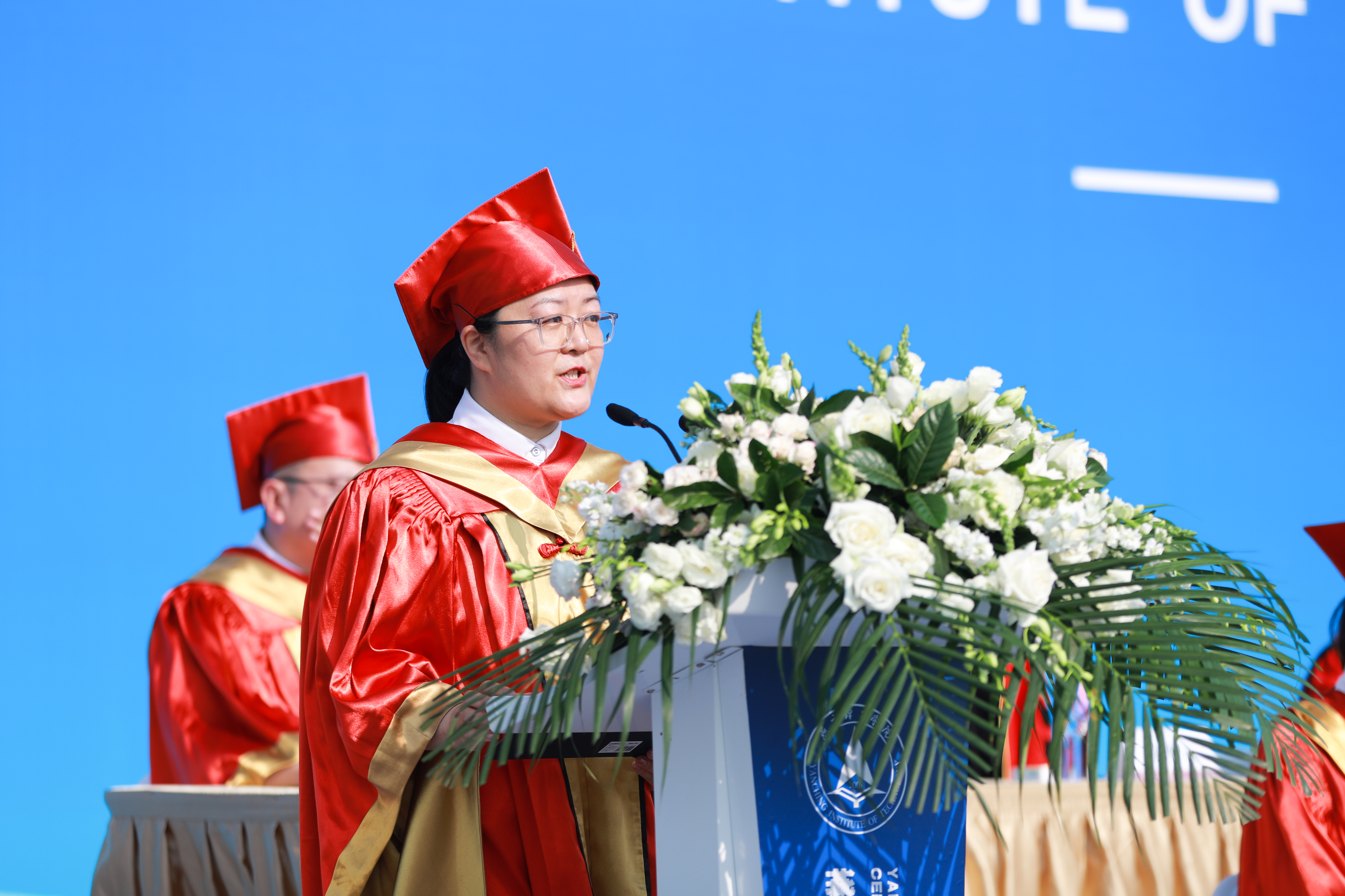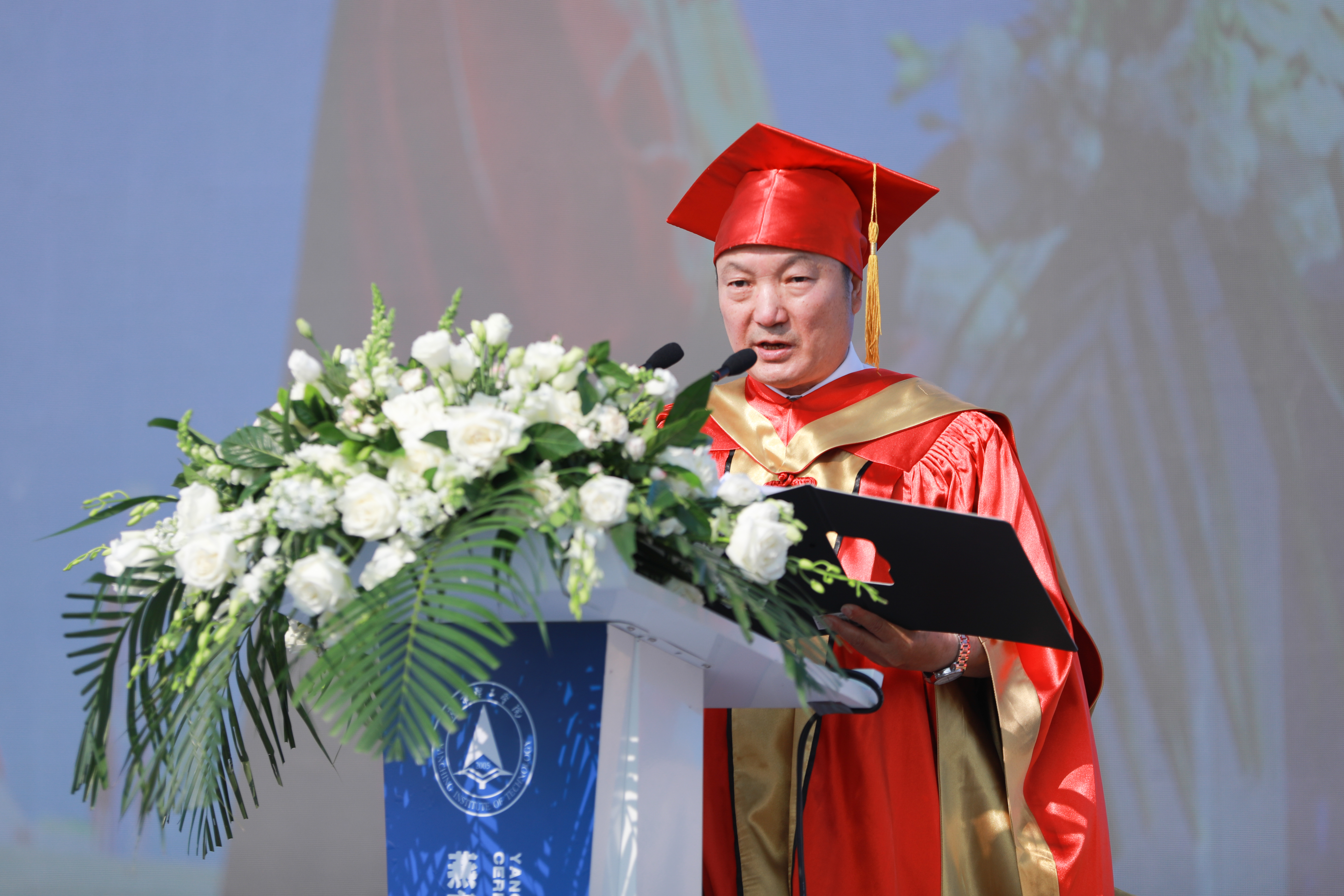 他激励广大毕业生恪守“勤奋创新 璞玉成器”的校训,争做现代化强国建设的主力军,积极迎接充满希望和挑战的未来,为祖国建设贡献贡献聪明才智。他说,党的二十大为我们描绘了建设社会主义现代化强国的宏伟蓝图,以中国式现代化推进中华民族伟大复兴。他希望同学们坚定信仰,奉献祖国人民;务实笃行,躬身伟大时代;探索创新,书写精彩人生;热爱生活,拥抱健康世界。他期待同学们按照习近平总书记对青年学生提出的要求,牢记党的教诲,立志民族复兴,不负韶华,不负时代,不负人民,在青春的赛道上奋力奔跑,争取跑出当代青年的最好成绩。