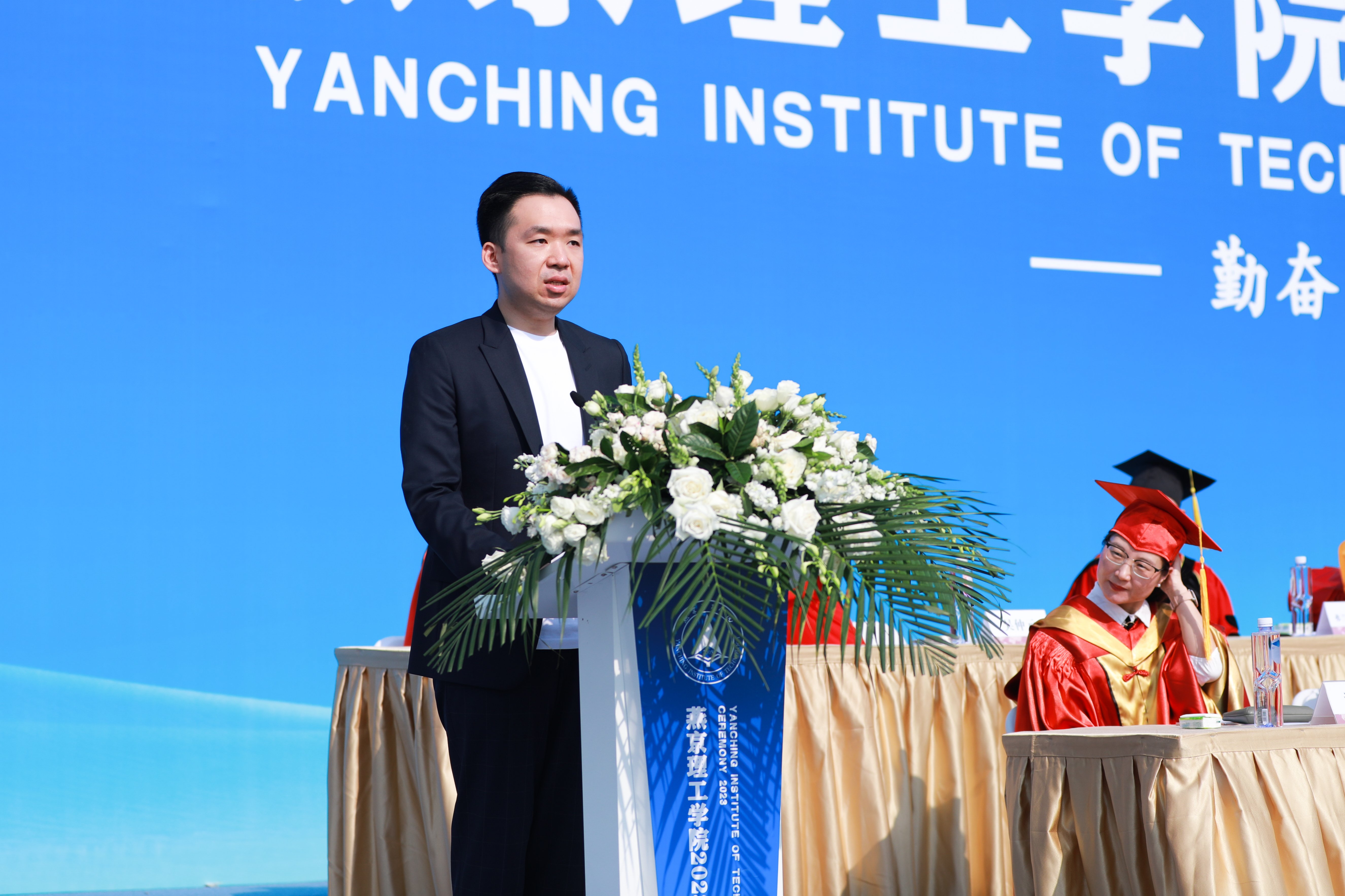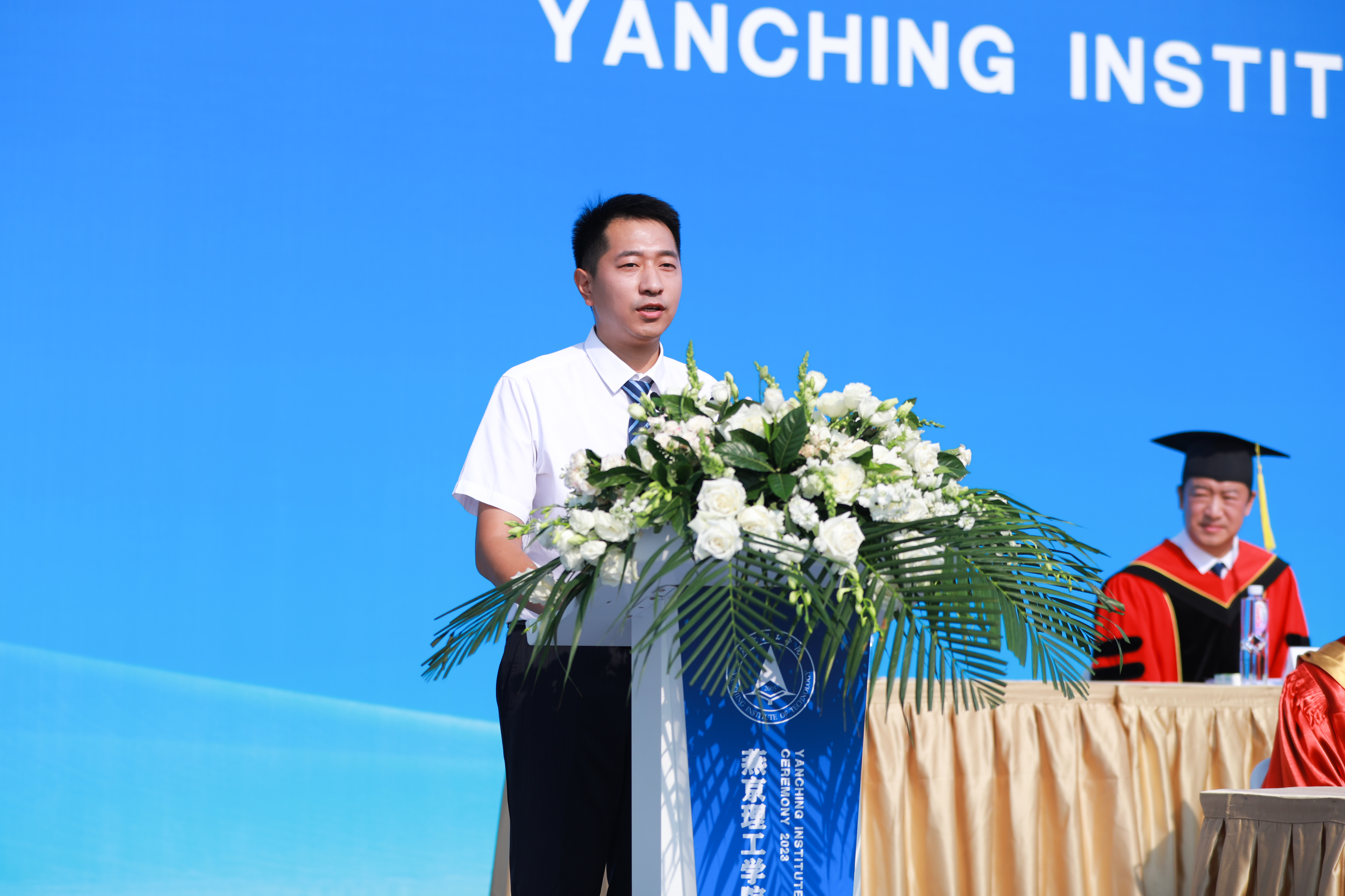 优秀校友代表、艺术学院2009级视觉传达设计专业的曹洋应邀参加典礼并向学弟学妹寄语。他向即将踏上新程的学弟学妹送上祝福,希望他们始终秉承家国情怀,既要仰望星空又要脚踏实地,永远不要停下学习的脚步,祝福他们壮志在胸,理想在怀,以梦为马,不负韶华。他分享,虽然已离开母校多年,但母校的影响一直延续至今,“勤奋创新、璞玉成器”的校训早已成为自己奋斗的座右铭。曹洋自从燕理毕业后,先后完成了硕士及博士阶段学习,2019年在中国旅游研究院开始博士后阶段研究工作,2022年6月博士后出站并留院工作。