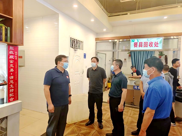 宋伟副校长介绍了我校食品安全工作开展情况,韩世春副市长一行到第一餐厅实地视察,检查了从业人员健康证、营业执照、食品经营许可证等证照情况,查询餐厅管理制度落实、食品原料进货查验记录、电子追溯平台运用等情况,巡查餐厅环境卫生,重点对“明厨亮灶”监控系统,对厨房环境卫生管理、食品加工操作流程、厨具及餐饮具消毒流程、生熟食品贮存规范、每日食品留样检查记录、食品垃圾分类处理等方面进行详细督查和问询。