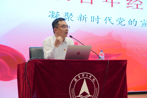 本网讯(党委办公室 王彦硕 侯芊羽)2023年5月23日,燕京理工学院2023年春季入党积极分子(高级)培训班第三讲在学校报告厅如期举行,此次培训的主题为《汲取百年经验,扛起使命任务,凝聚新时代党的宣传思想工作的磅礴力量》,本次培训由党委宣传部部长、校长助理、副教授赵鹏主讲。