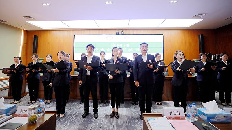 “不负韶华、只争朝夕、实现育人成果使命,戮力同心、和谐共通、建设燕理美好家园!”五期班全体成员共同带来诗朗诵《铸魂奋进 卓越五期》,在铿锵有力的诵读声中展现了青年干部们一路走来的成长与收获,彰显了青年干部群体的奋进风貌。