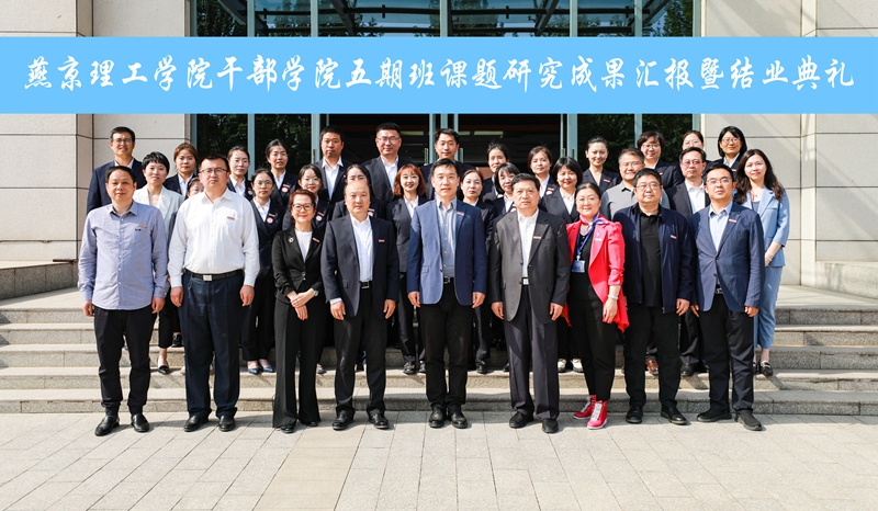校长杨庚宇就课题研究情况进行了点评总结。他指出,五期班的课题研究方法、路径清晰、科学,选题做到了“三突出”,即突出了教学这一学校中心工作、突出了科技发展的前沿、突出了实用性,研究成果有理论高度、有创新方法、有实用价值。他总结认为,五期班很好的传承了干部学院优良的学风,很好的践行了燕理“勤奋创新 璞玉成器”的校训精神,很好的弘扬了学校“共担共享”的优良校风。