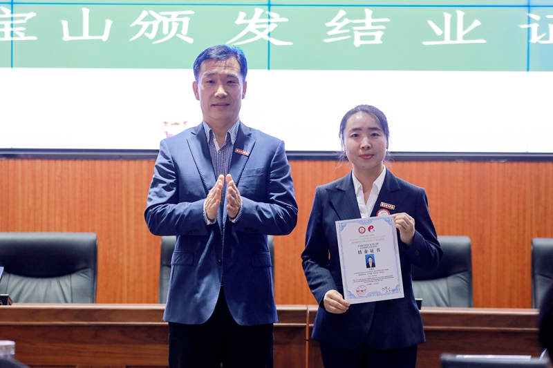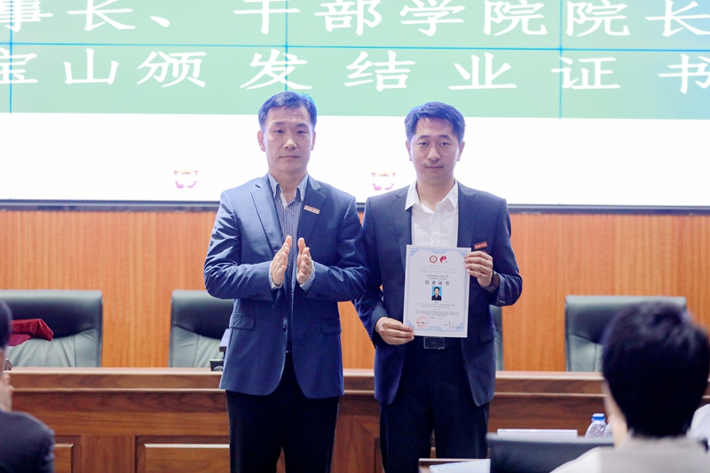理事长、干部学院院长李宝山为学员颁发结业证书