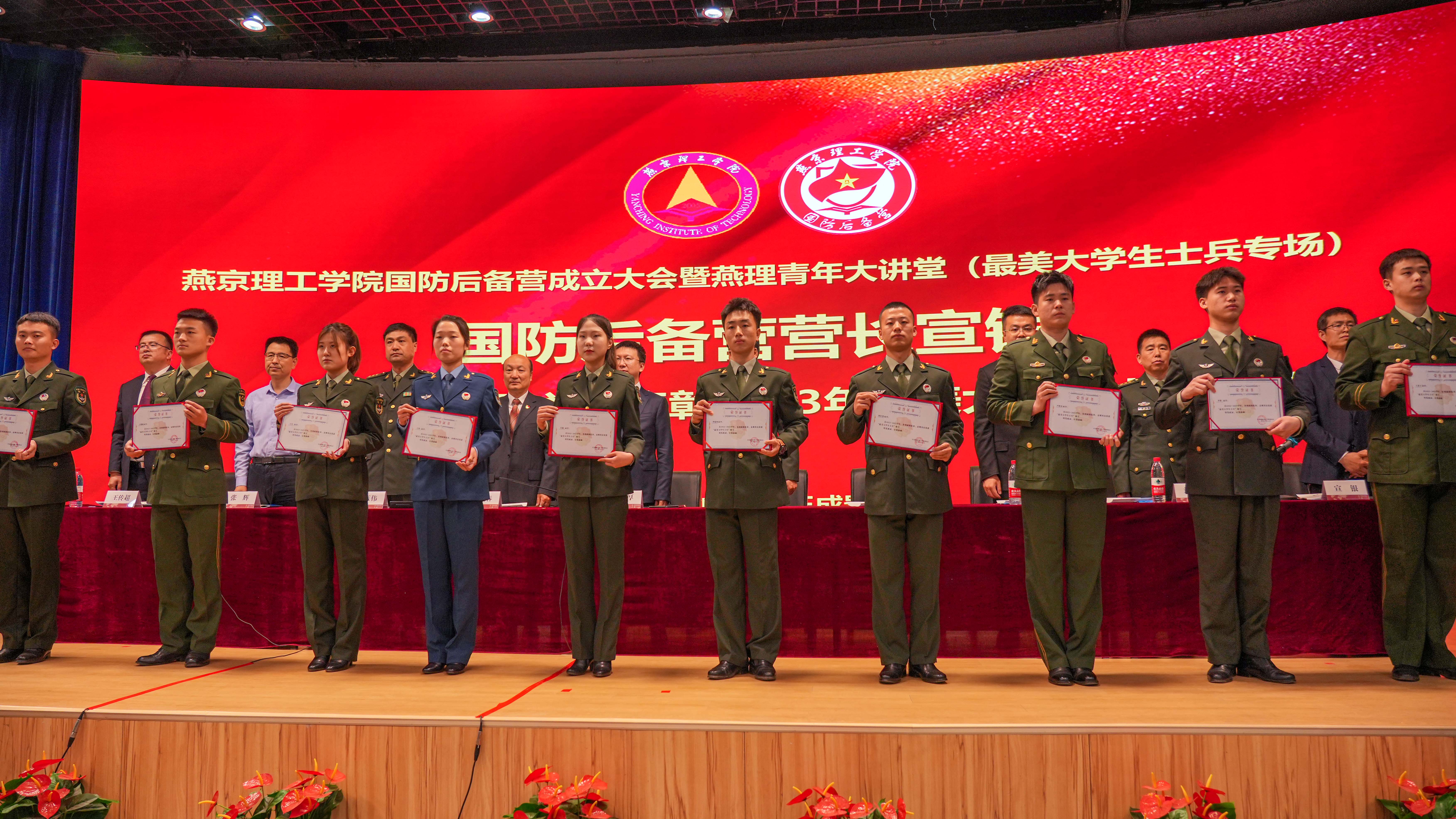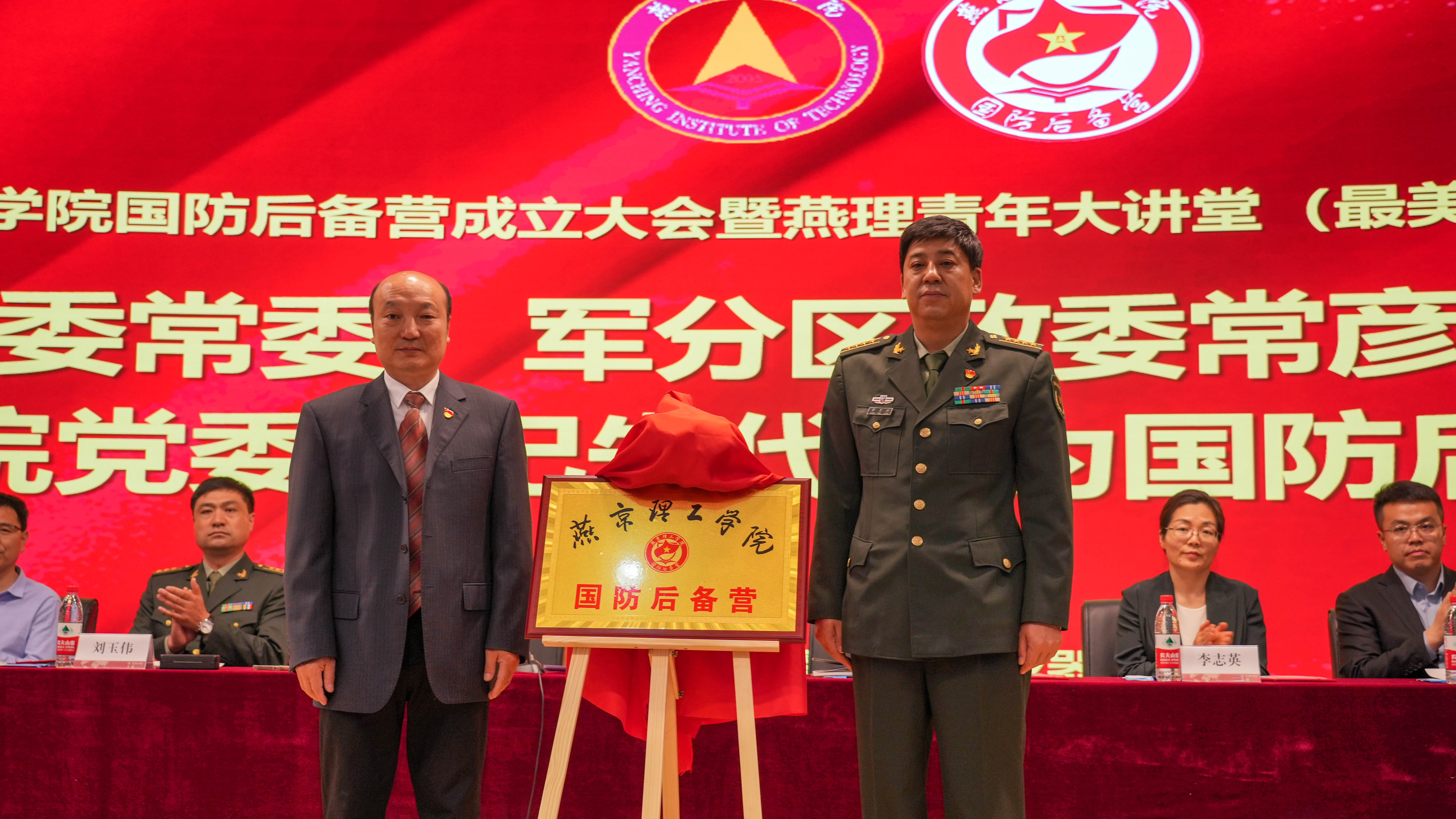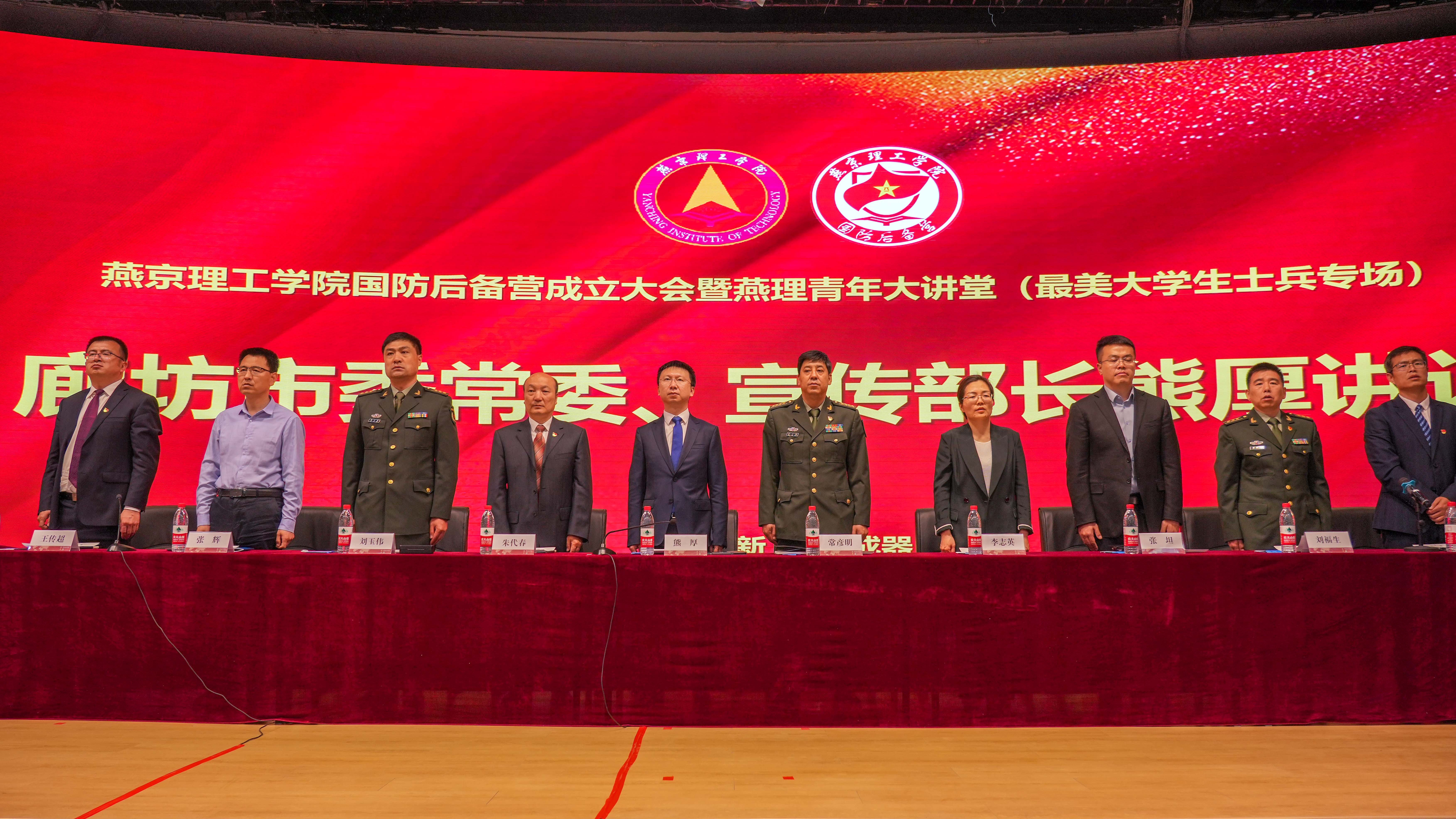 燕京理工学院党委副书记、副校长王传超宣读《关于成立燕京理工学院国防后备营的决定》,任命燕京理工学院武装部部长宣银为国防后备营营长、校团委副书记杨文静为国防后备营指导员。