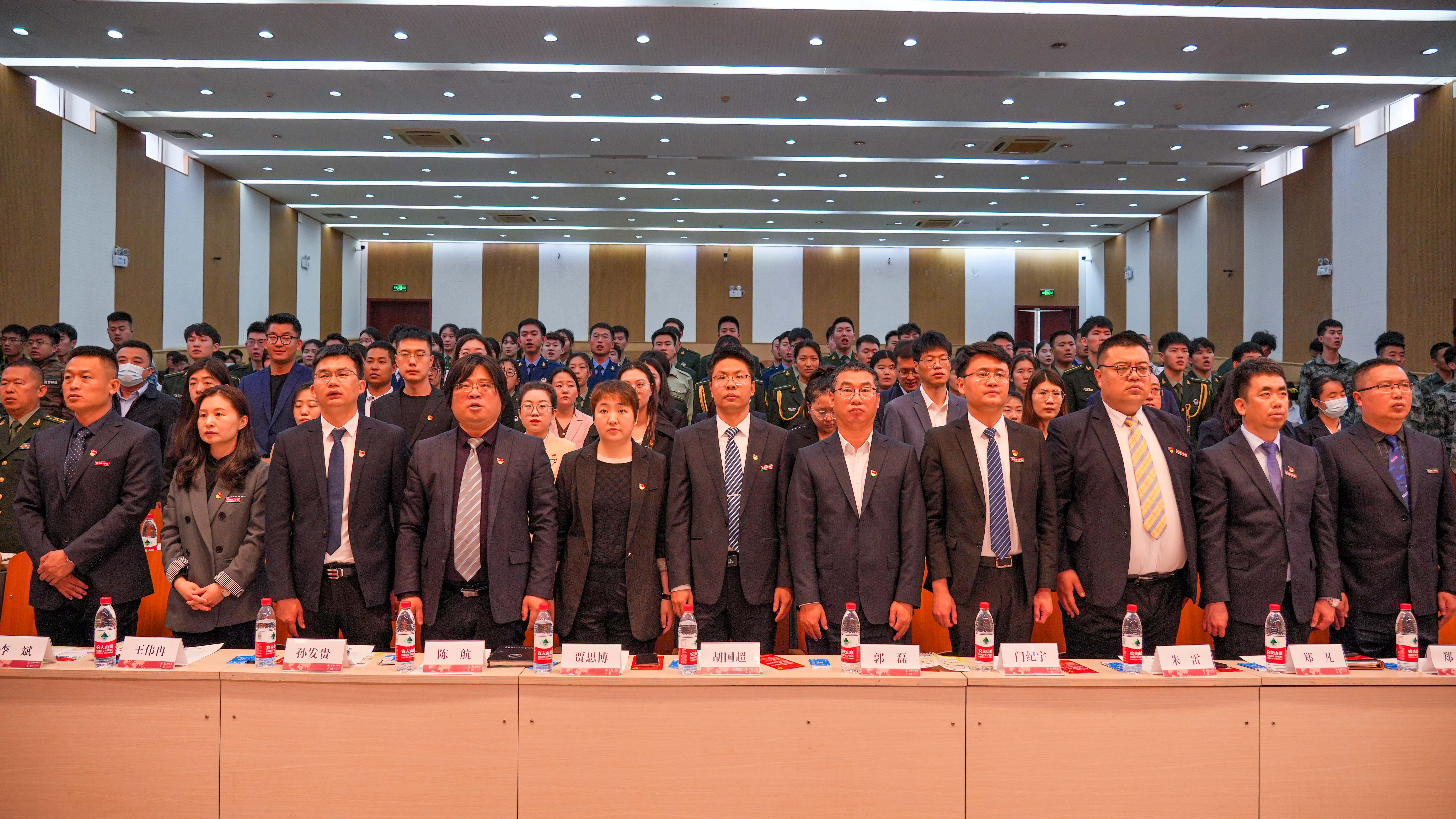 燕京理工学院党委书记朱代春致辞,他对莅临我校的领导表示热烈的欢迎和诚挚的感谢,并对本次大会提出了三点希望:一、坚守理想信念,以中华民族伟大复兴为己任,培塑家国情怀;二、增长本领才干,以追求卓越的精神深耕细作,向更高标准迈进;三、铭记责任和使命,以担当的精神严以律己,助力国防事业。他呼吁同学们铭记责任和使命,以饱满的热情、昂扬的斗志积极服务学校和国家的国防事业,做出无愧于时代、无愧于青春的辉煌成绩!