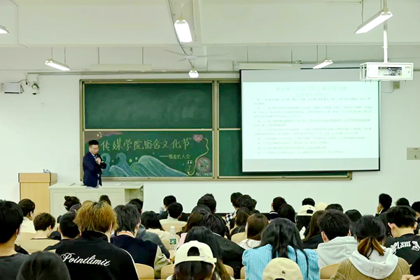传媒学院开展宿舍安全隐患教育讲座。讲座现场列举了全国各高校由于宿舍管理中存在的安全隐患问题,并提出倡议:例如,不使用大功率危险电器,杜绝使用违章电器,宿舍无人时要关闭所有电器;不在宿舍内私接电源和改动电线线路,离开宿舍前切断所有电源;电源接线板不放在纸箱、易燃物品上面;衣物、报纸等易燃物不要堆放在插板上;电源不与床架等金属物相接触;不在室内使用蜡烛、打火机等明火及易燃物,不得焚烧信件、杂物等注意事项。