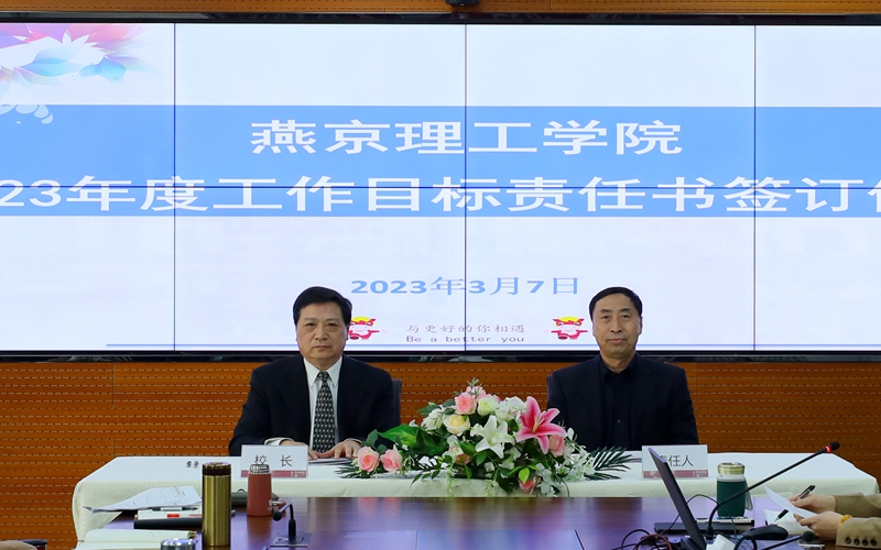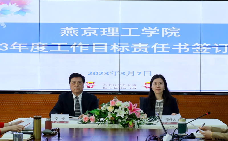 本网讯(人事处 学校办公室 李家曾 韩冰 付盛通 谷是瑾)3月7日,燕京理工学院2023年度工作目标责任书签订仪式在综合办公楼428会议室举行。学校领导杨庚宇、朱代春、刘元园、王传超、吴汶燕、宋伟、吴敏、赵鹏和全体中层干部参加了会议。会议由校长杨庚宇主持。