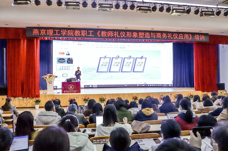 本网讯(人事处 宣传部 韩冰 梁子霖 贺雨欣 申超)为进一步加强师德师风建设,弘扬教师文明礼仪,不断提升教职工整体素养,帮助教职工塑造新时代立德树人、为人师表的良好形象,3月1日,燕京理工学院“教师礼仪形象塑造与商务礼仪应用”专题培训在报告厅举办。培训邀请注册国际高级礼仪培训师于坤弘主讲。校长助理赵鹏参加并主持培训。