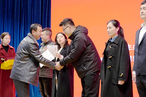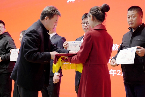 随后邢威、苑立双、陈东健、王昭策、李庆娟、冷传捷、高斯恬、吴山代表各小组上台,由华北科技学院学生处处长林刚、唐山职业技术学院原学生处处长昝久占为学员代表颁发结业证书。