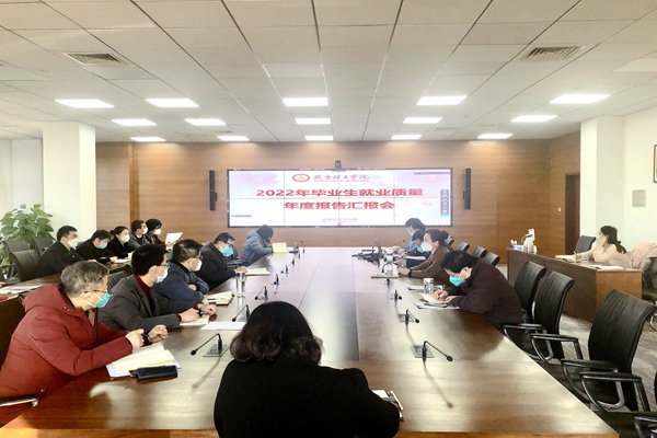本网讯(就业指导与校企合作中心 李艳杰)为进一步促进学校就业工作提质增效,助力毕业生高质量就业,形成教学培养和就业工作深度互动的长效机制。12月29日,2022年毕业生就业质量年度报告汇报会在综合楼428召开。学校领导杨庚宇、刘元园、王传超,就业指导与校企合作中心、教务处、学生处负责人,各二级学院院长、书记参加了会议。会议由党委常务副书记、副校长刘元园主持。
