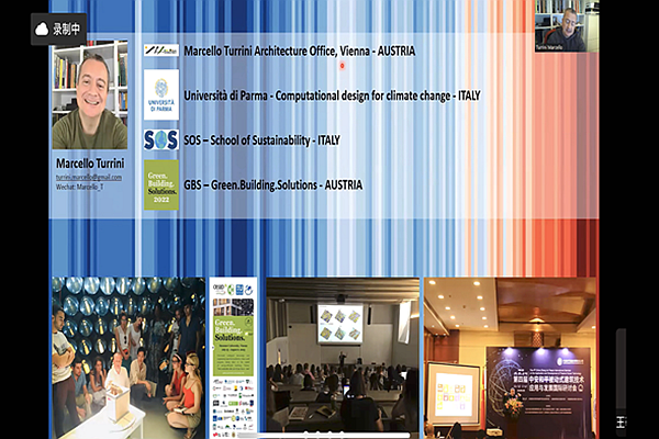 维也纳技术大学建筑系 Prof.Dr. Marcello Turrini 以“气候变化与低碳建筑”为主题,向大家分享了建筑方案与气候环境、建筑方案与碳排放、人类健康与建筑方案的关系,以及各个系统的统一融合,还结合PPT为大家讲解了适应环境变化的建筑方案。